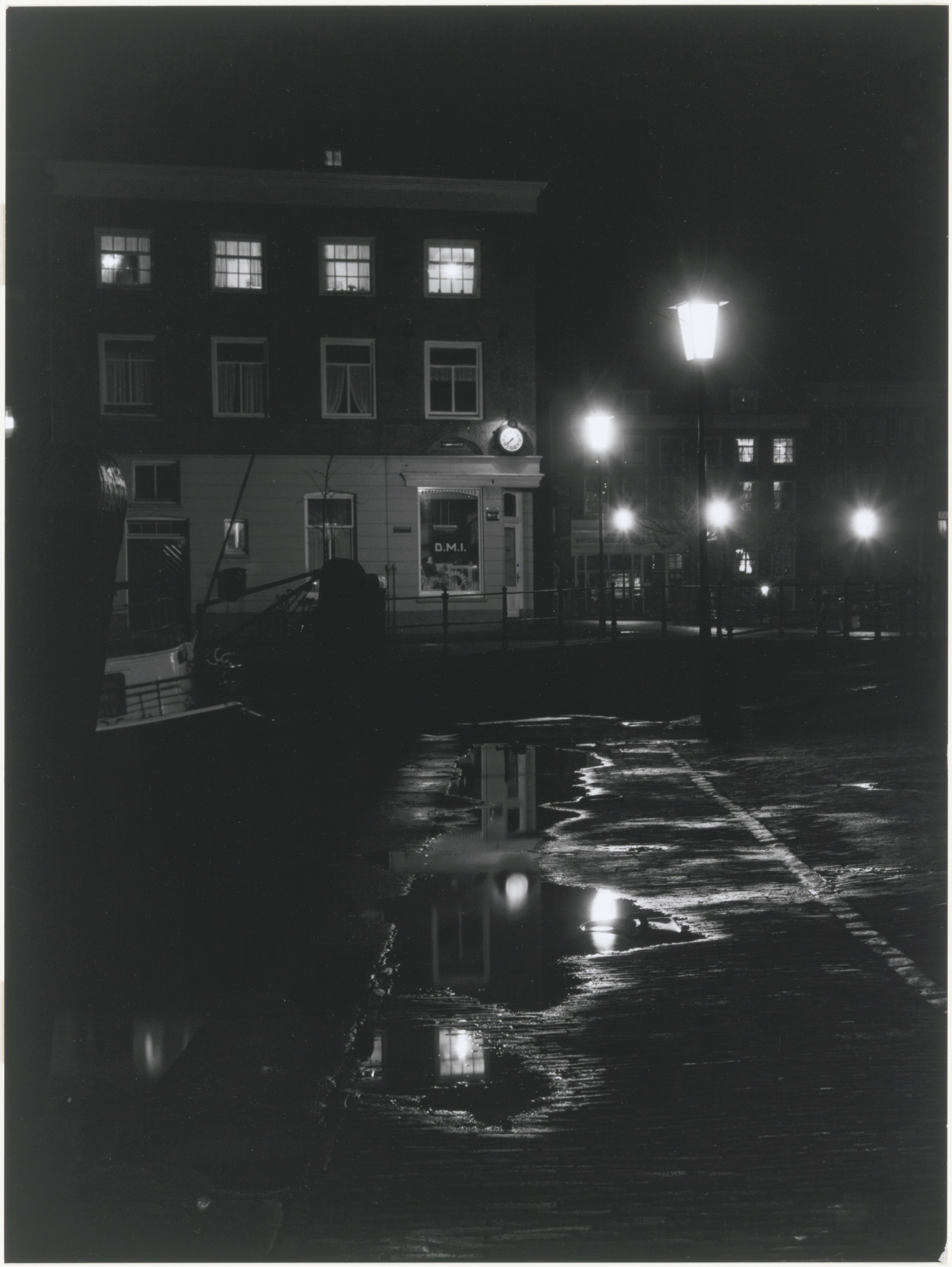 Zuivelhandel op hoek van de Nieuwe Haven (links) en het Vlak, gezien vanaf de …