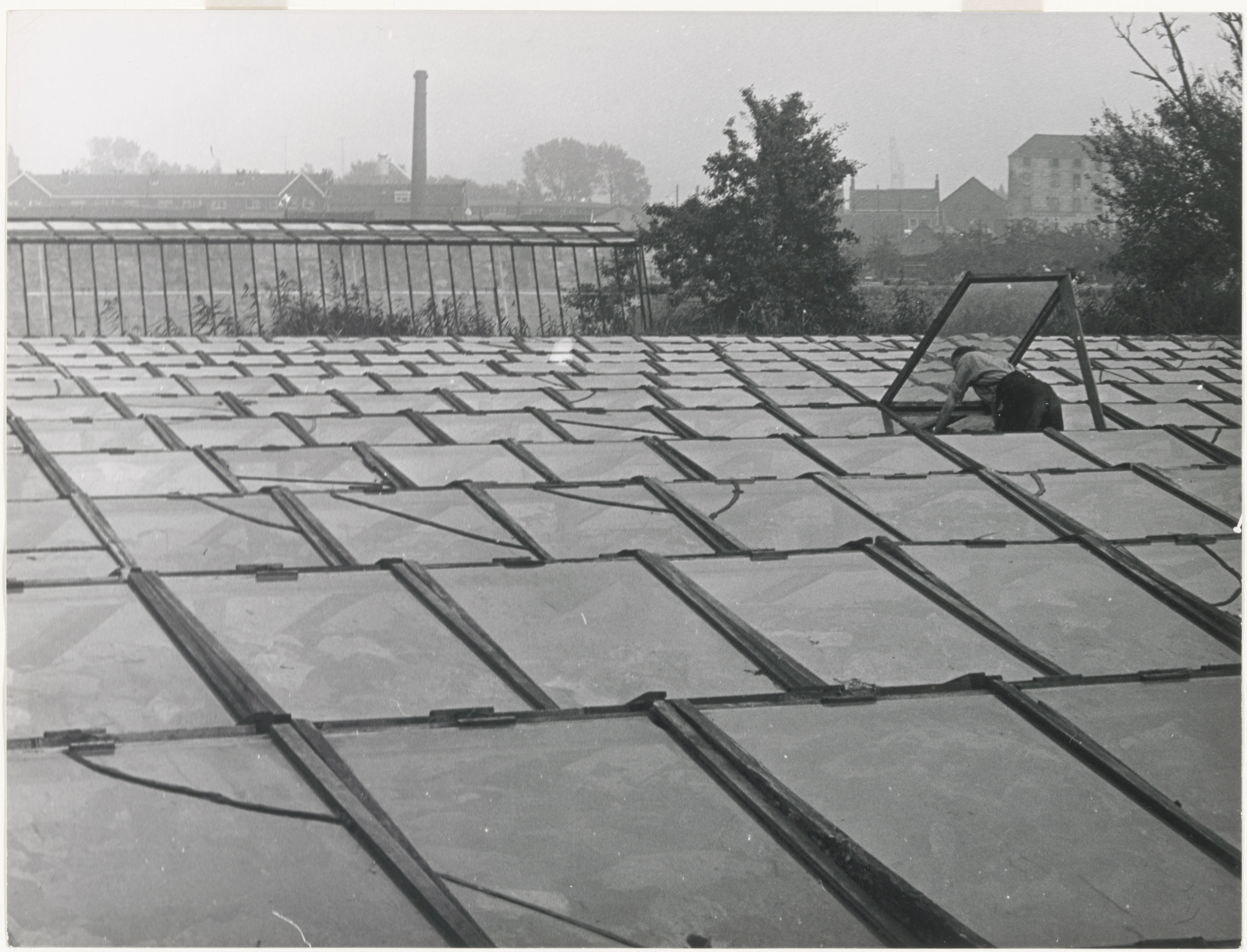 - Kassen in het tuinbouwgebied Walburg in Zwijndrecht. Op de achtergrond de Ringdijk.
