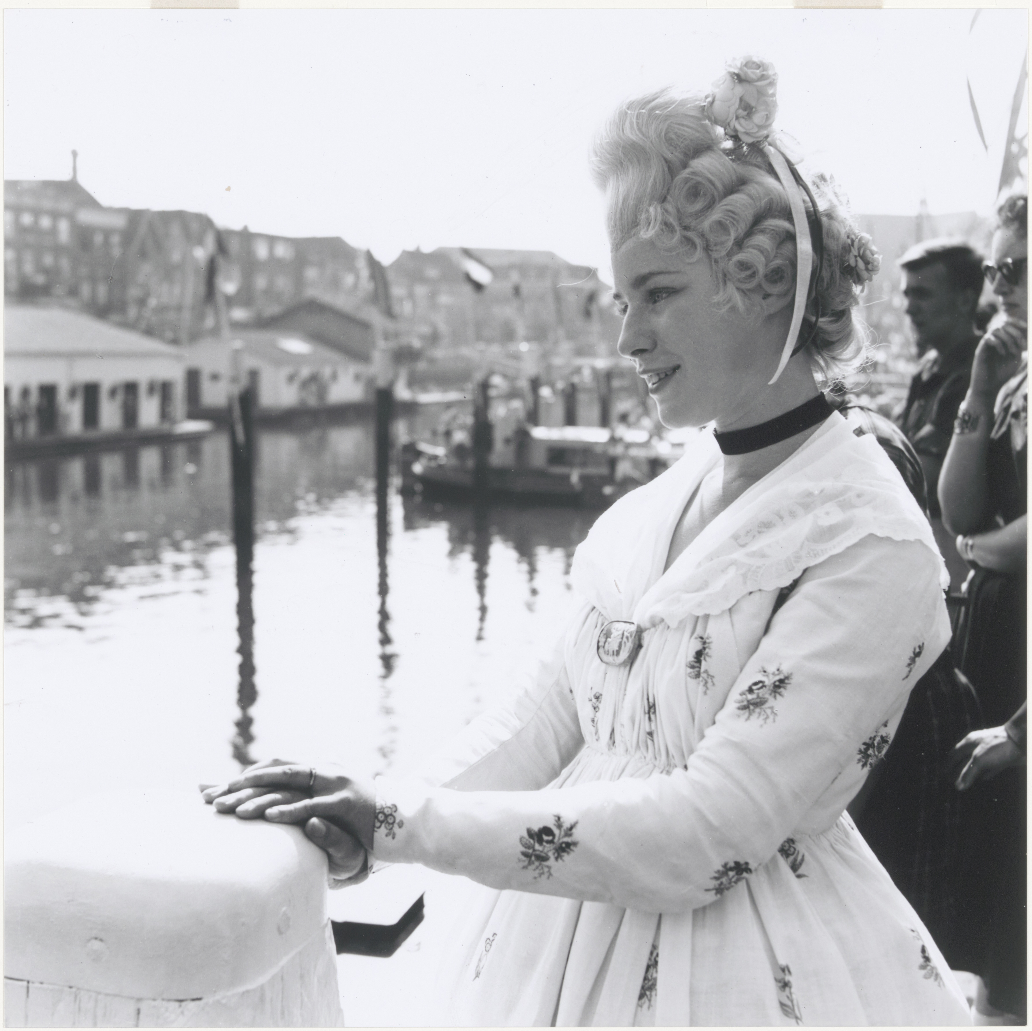 - Publiek langs de Nieuwe Haven. Op de achtergrond het botenhuis van de roei- en zeilvereniging aan de Knolhaven.