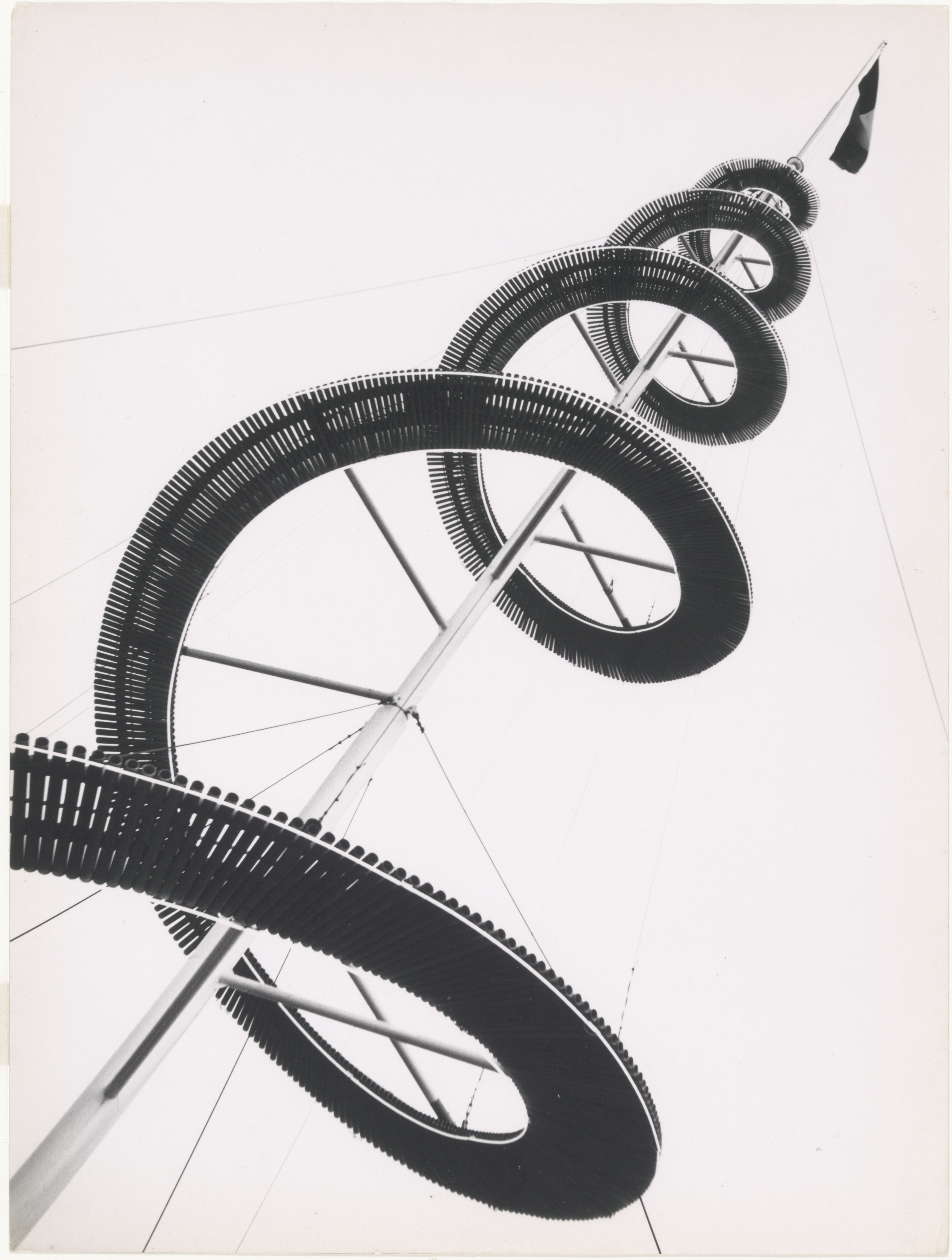 - Een trap kronkelt zich langs een mast omhoog op de Wereldtentoonstelling in Brussel.