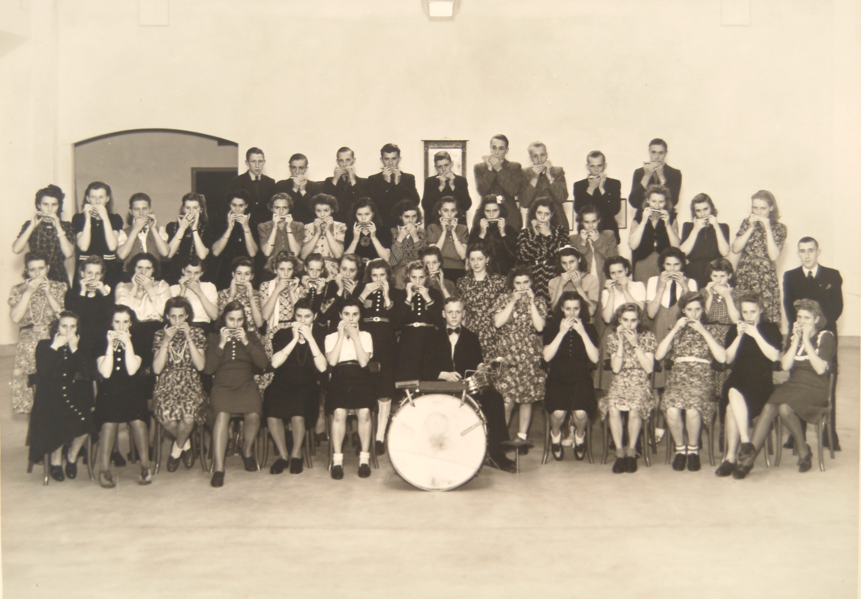 Mondharmonicaclub van de Chocolade- en biscuitfabriek Victoria aan de Korte Parallelweg.