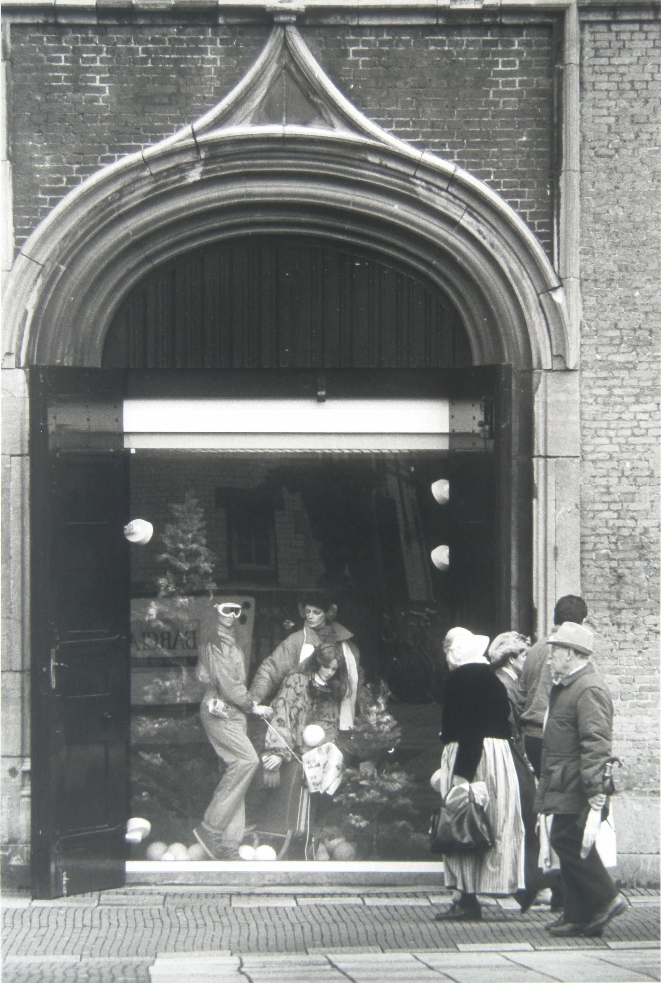- Etalage van Ter Meulen gevestigd in de voormalige Waalse kerk op de hoek Voorstraat Visstraat