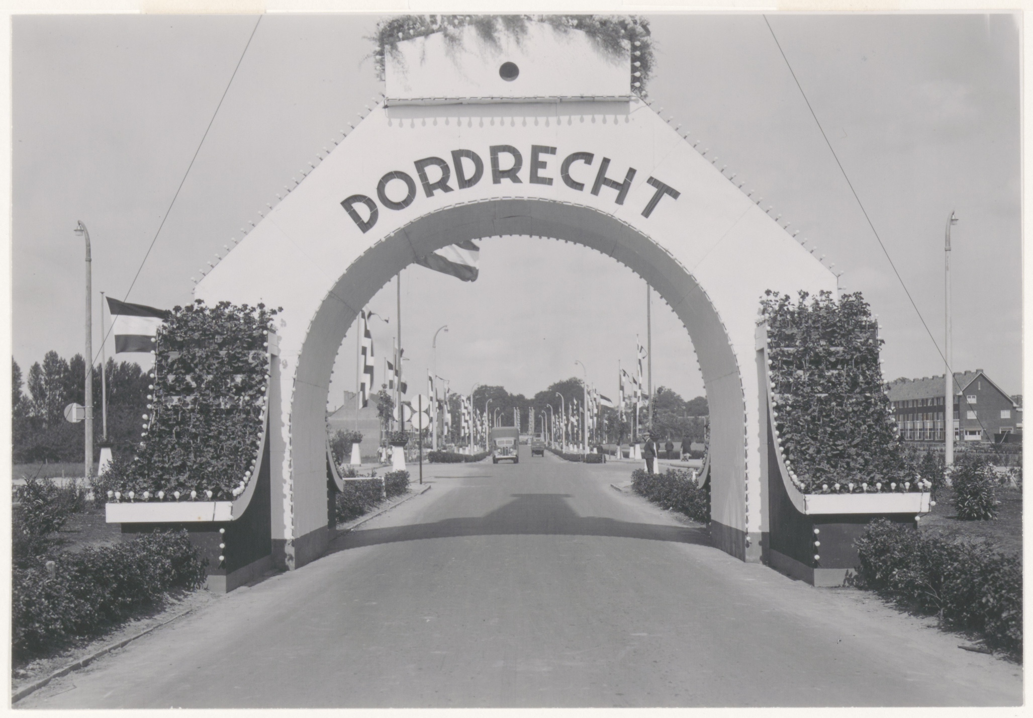 - Een zuil met de woorden Scheepvaart en Industrie op het Hugo de Grootplein, daar neergezet ter gelegenheid van de feestelijke openstelling van de verkeersbrug over de Oude Maas op 24 juni 1939.
