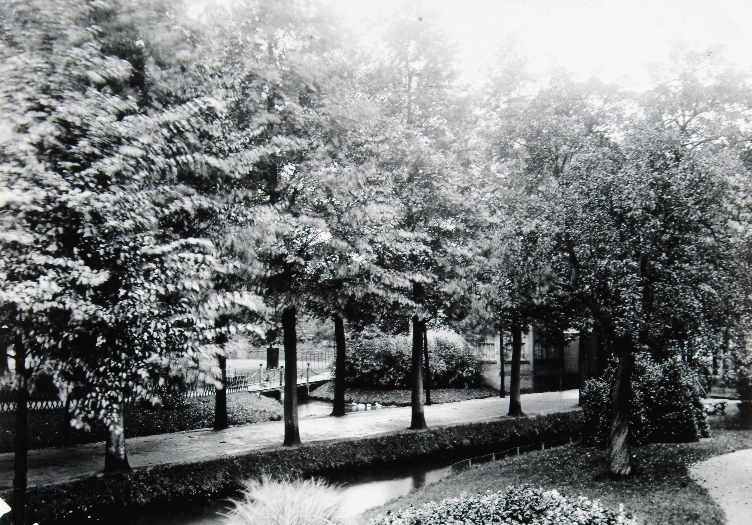 - Vanuit de tuin van de familie Lebret op de hoek van de St. Jorisweg ziet men over de Van Hoogstratensingel het park Merwestein met tuinkoepel, die begin 1900 werd afgebroken.