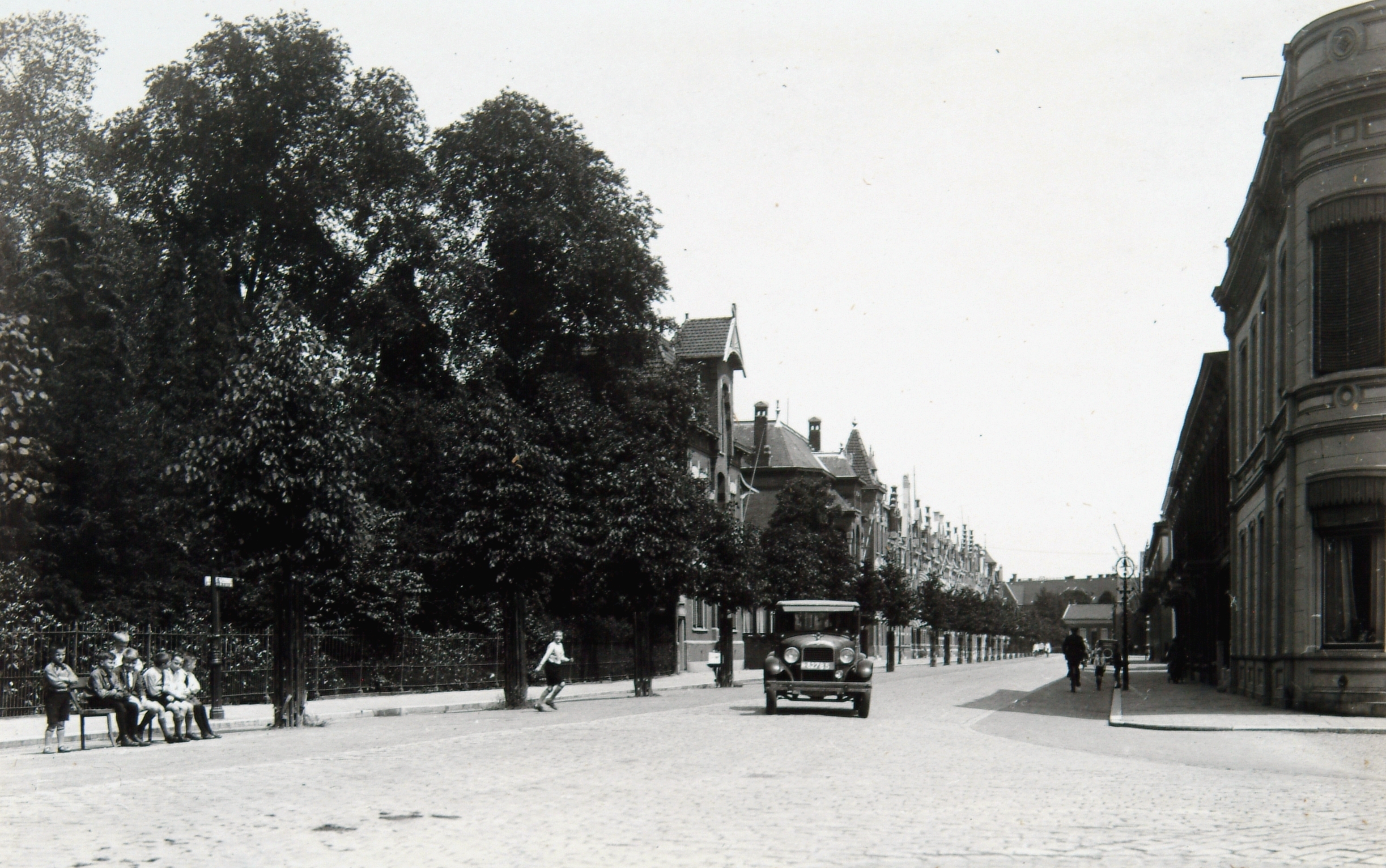 De Nicolaas Maessingel. Rechts is de Stationsweg met op de hoek Huize St. Anna - een rusthuis voor katholieke bejaarden.