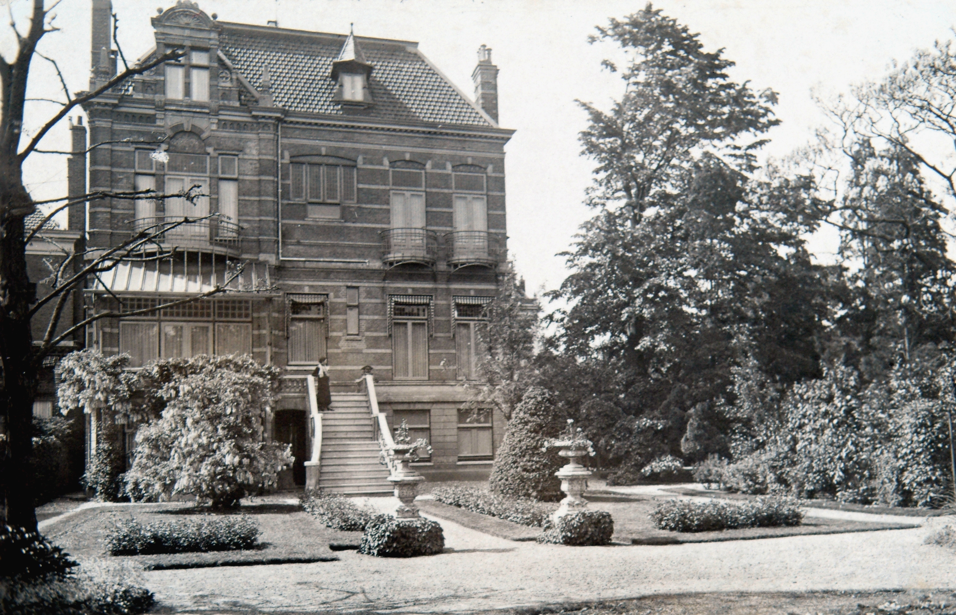 - Achterzijde van de villa van de heer Stoop aan de oostzijde van de Van Hoogstratensingel, naast park Merwestein. Later werd deze villa bewoond door de familie Lips.