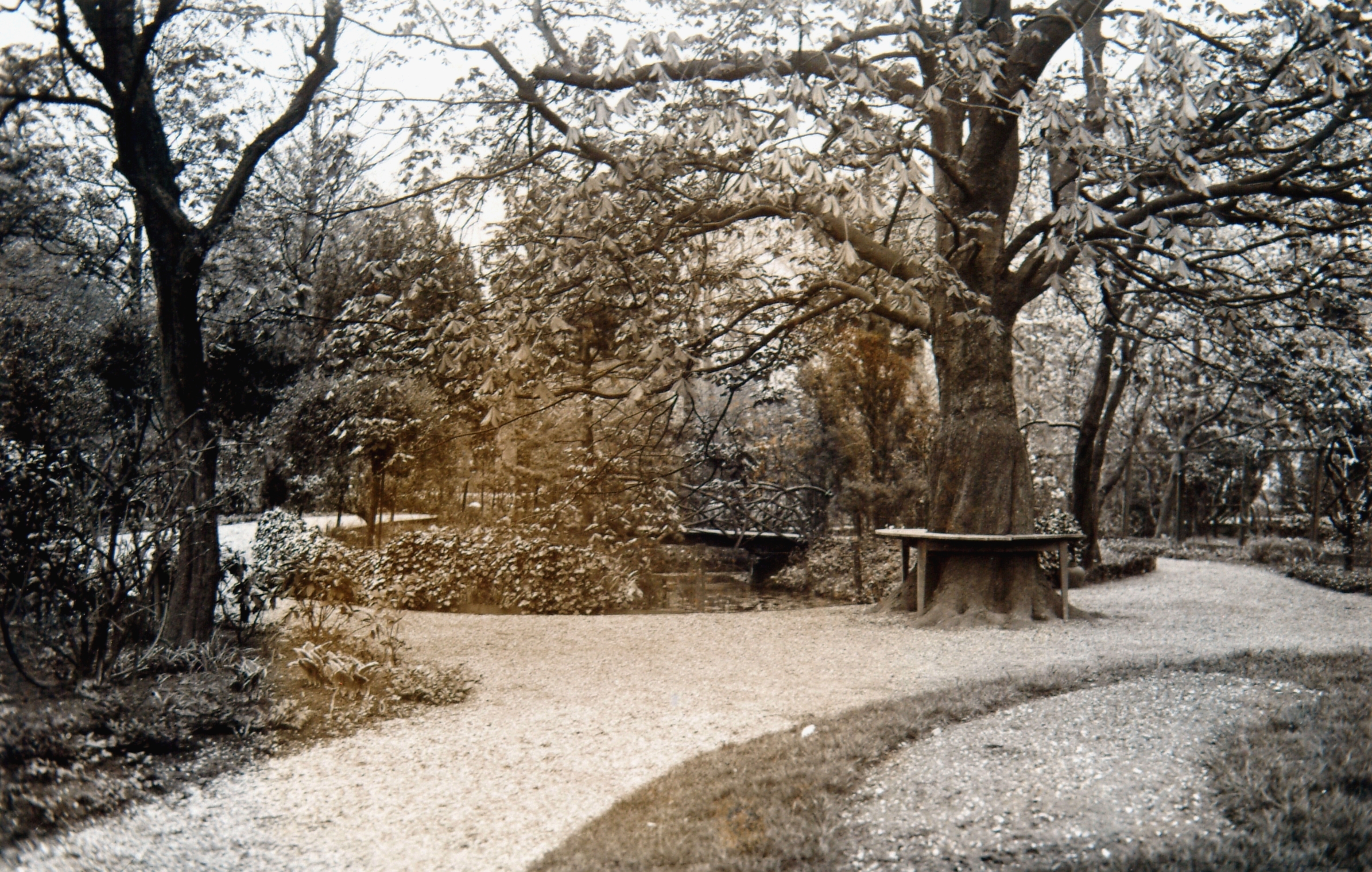 Een stuk tuin achter een villa. Dit gedeelte maakt nu deel uit van park Merwestein.