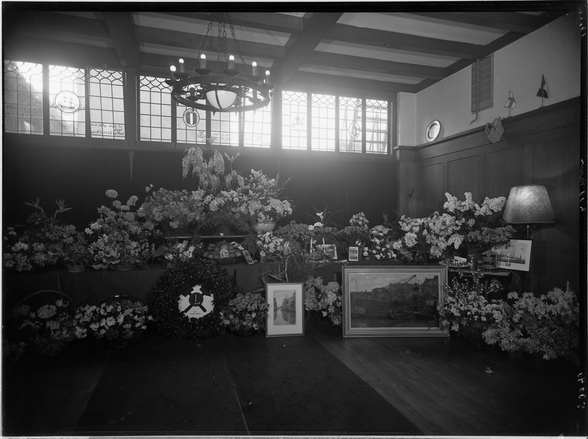 - Bloemen en geschenken bij een jubileum in kolenhandelaarsfamilie Looman in hun huis aan de Noordendijk