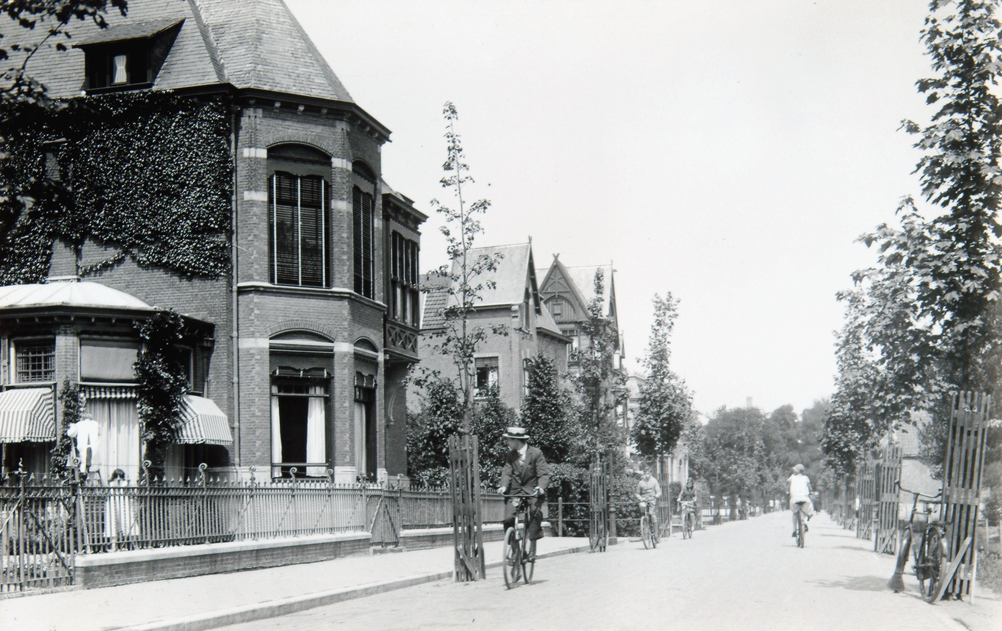 De Van Hoogstratensingel gezien vanaf de Vrieseweg richting de St. Jorisweg. Links vooraan het huis van de weduwe Lips.