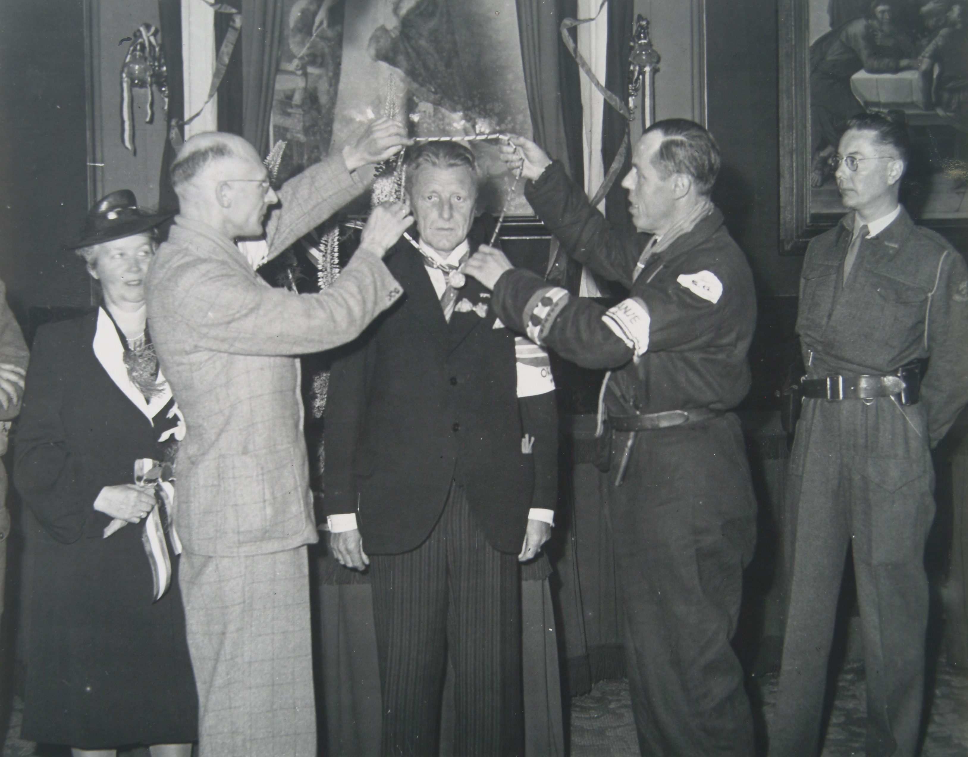 - Herinstallatie van burgemeester J. Bleeker door Geert van Twist, adjudant van prins Bernhard