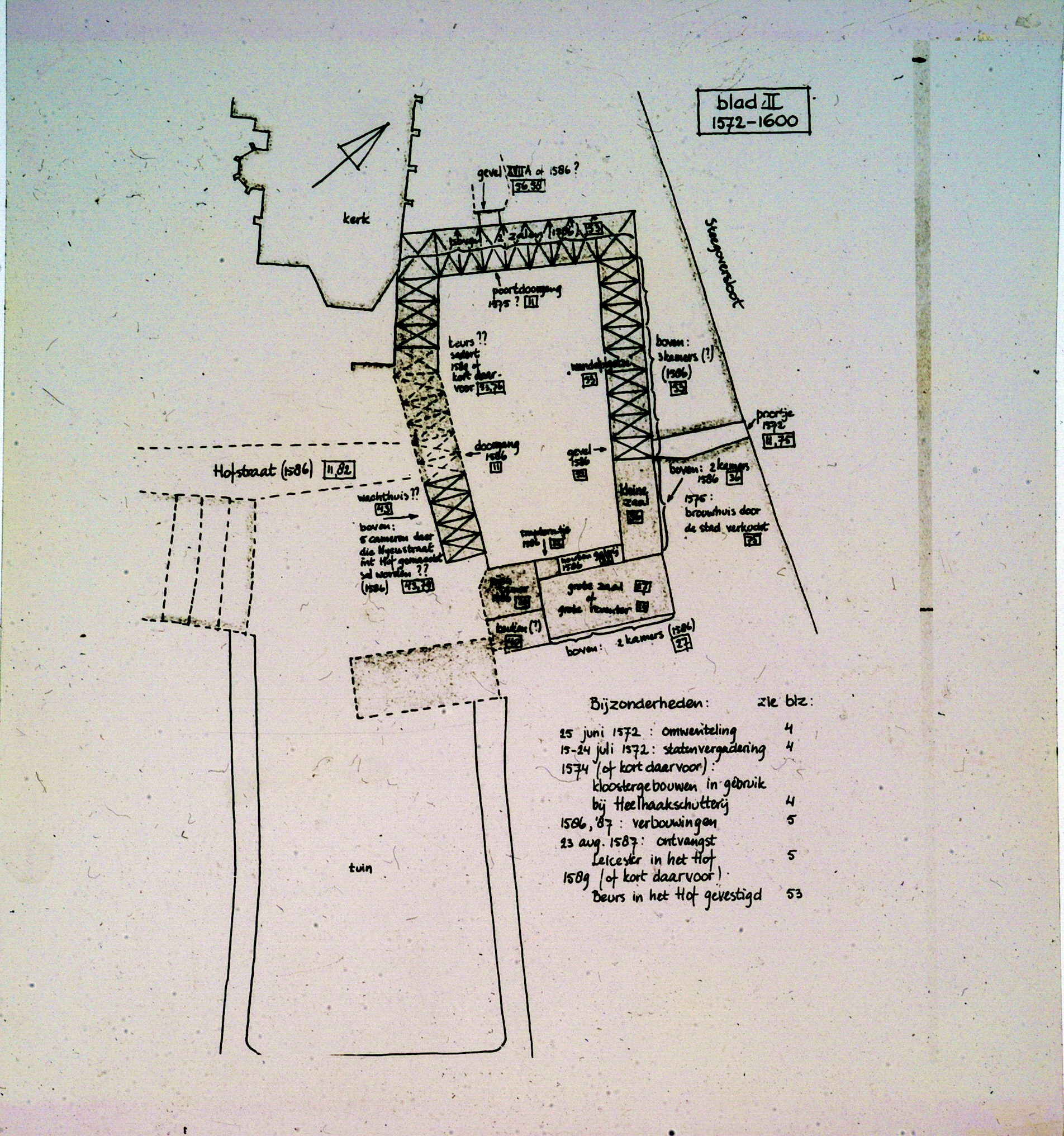 - Plattegrond van de omgeving tussen de Hofstraat en het Steegoversloot, omstreeks 1572-1600.