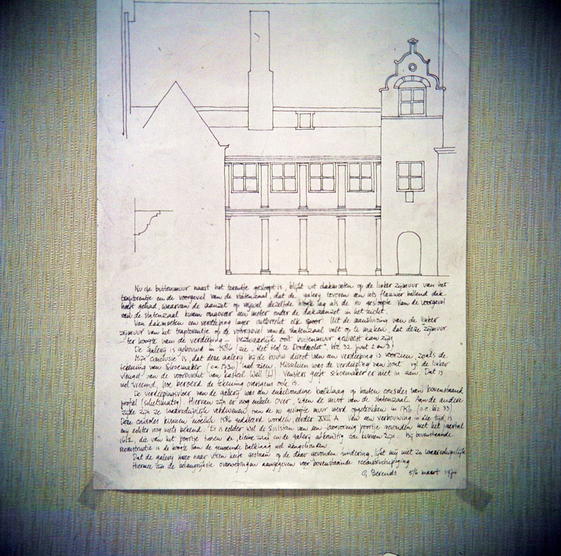 Tekening met tekst en uitleg over de Statenzaal van het Hof.