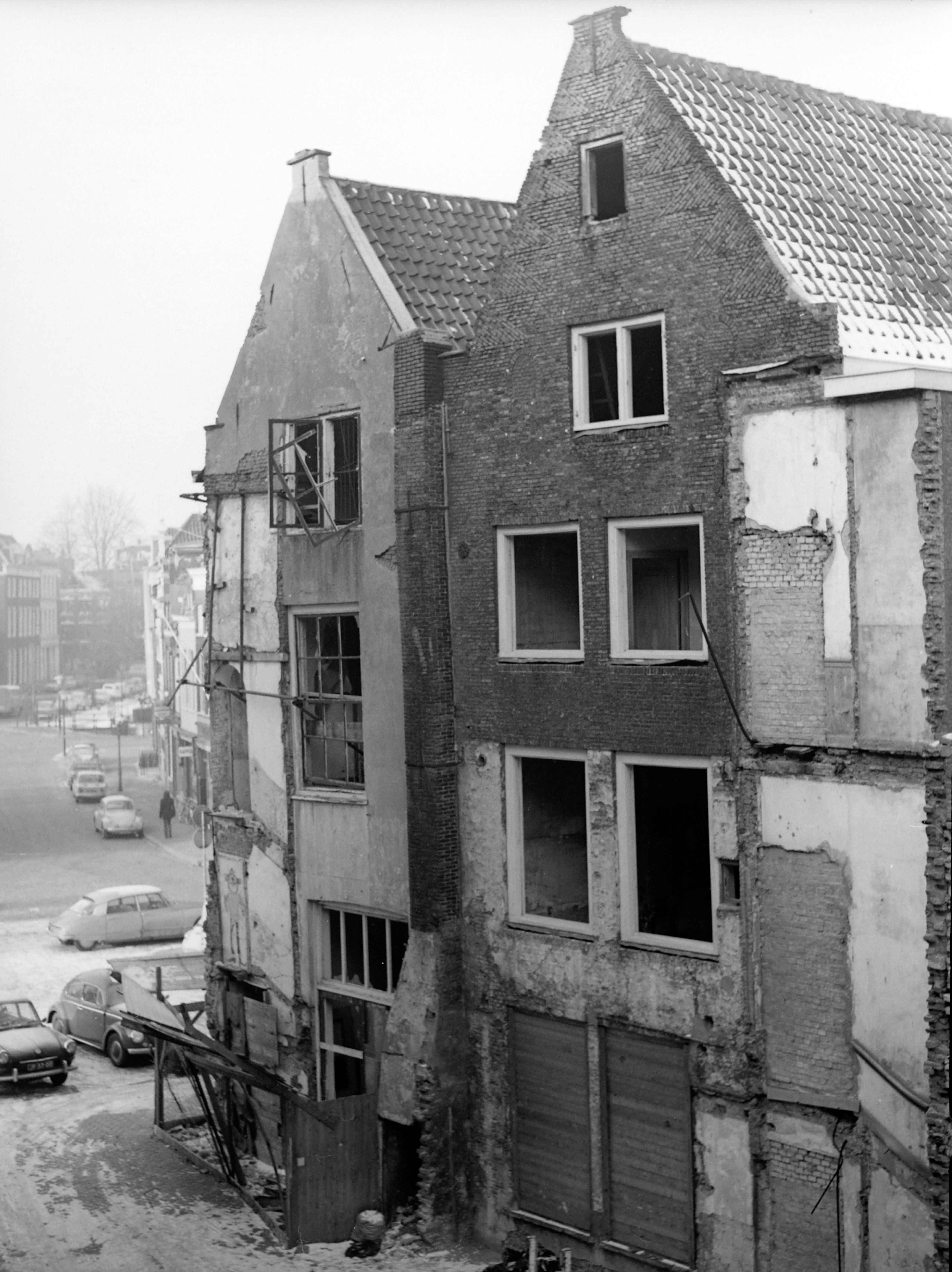 Sloop van panden aan de Gravenstraat. Je kijkt naar de Aardappelmarkt richting het …