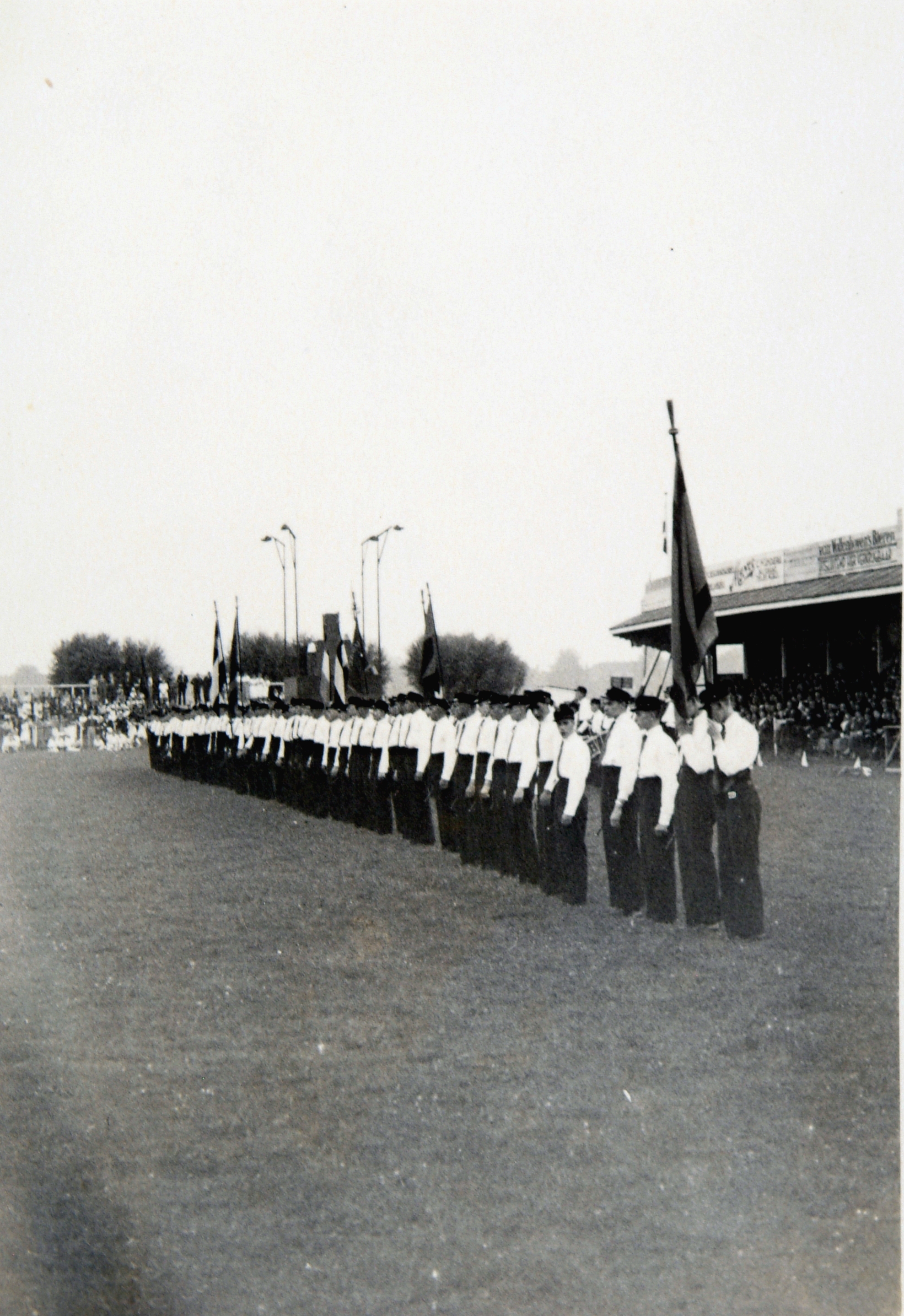 - jubilea muziekkorpsen publiek / toeschouwers sportterreinen tribunes verenigingen vlaggen(stokken)