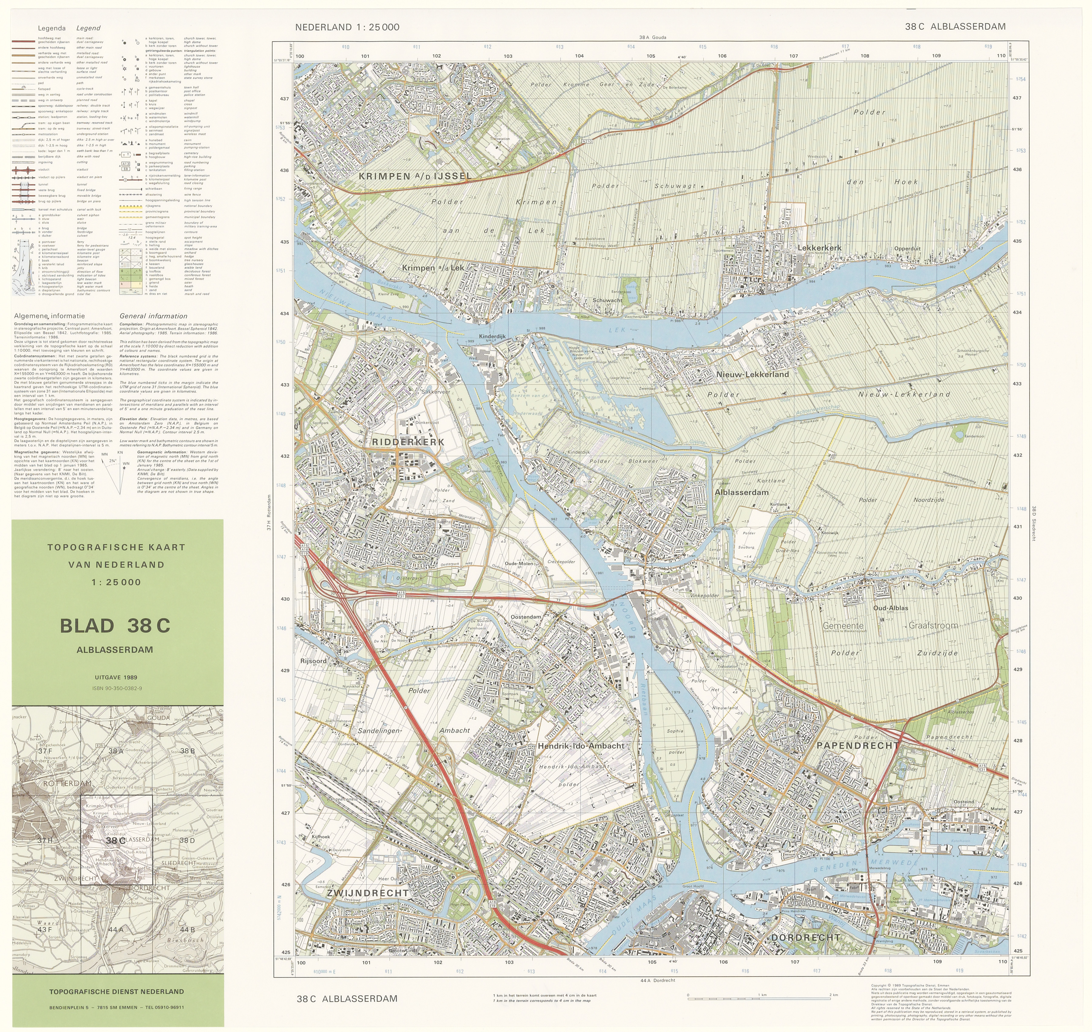 Topografische kaart van Alblasserdam: l.o. Zwijndrecht, r.o. de Staart, r.b. Lekkerkerk …