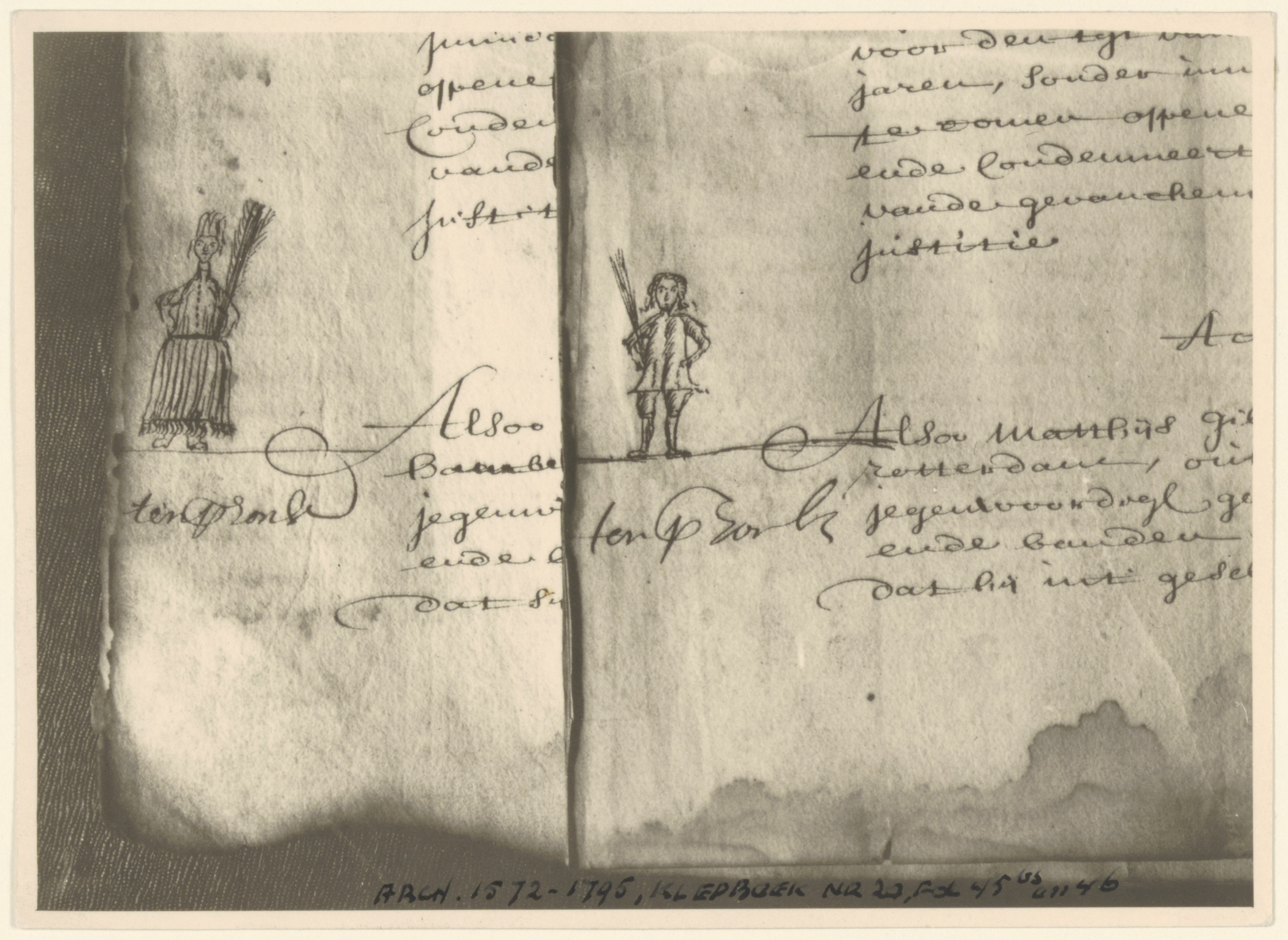 - Tekeningen in de marge van klepboeken (15,17,20 en 23) uit archief 3. Op de foto's zijn de vindplaatsen aangegeven in de klepboeken. De tekeningen zijn waarschijnlijk door anonieme klerken gemaakt in de 17e en 18e eeuw.