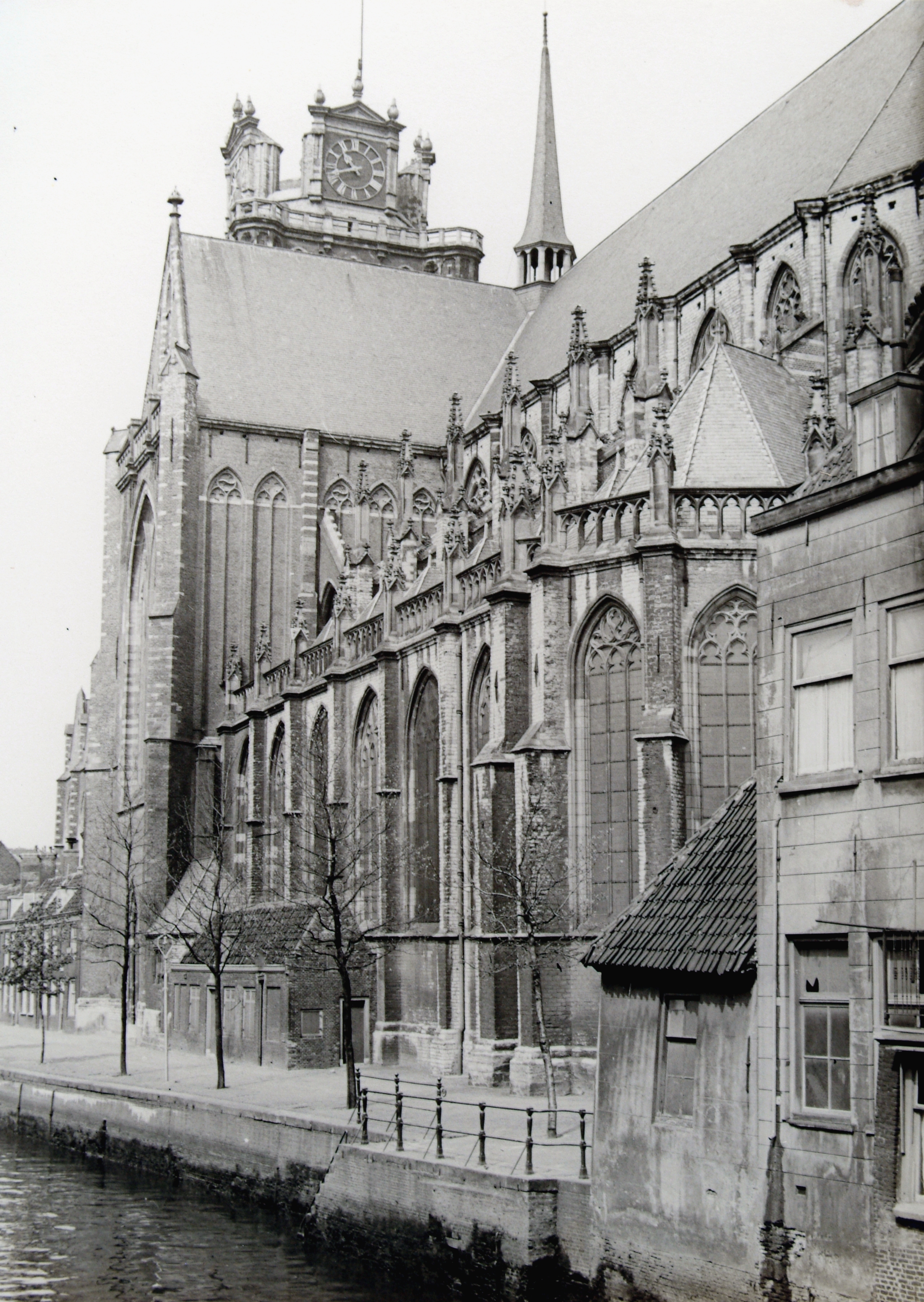 De Grote Kerk langs de Piottenkade en de Voorstraatshaven.