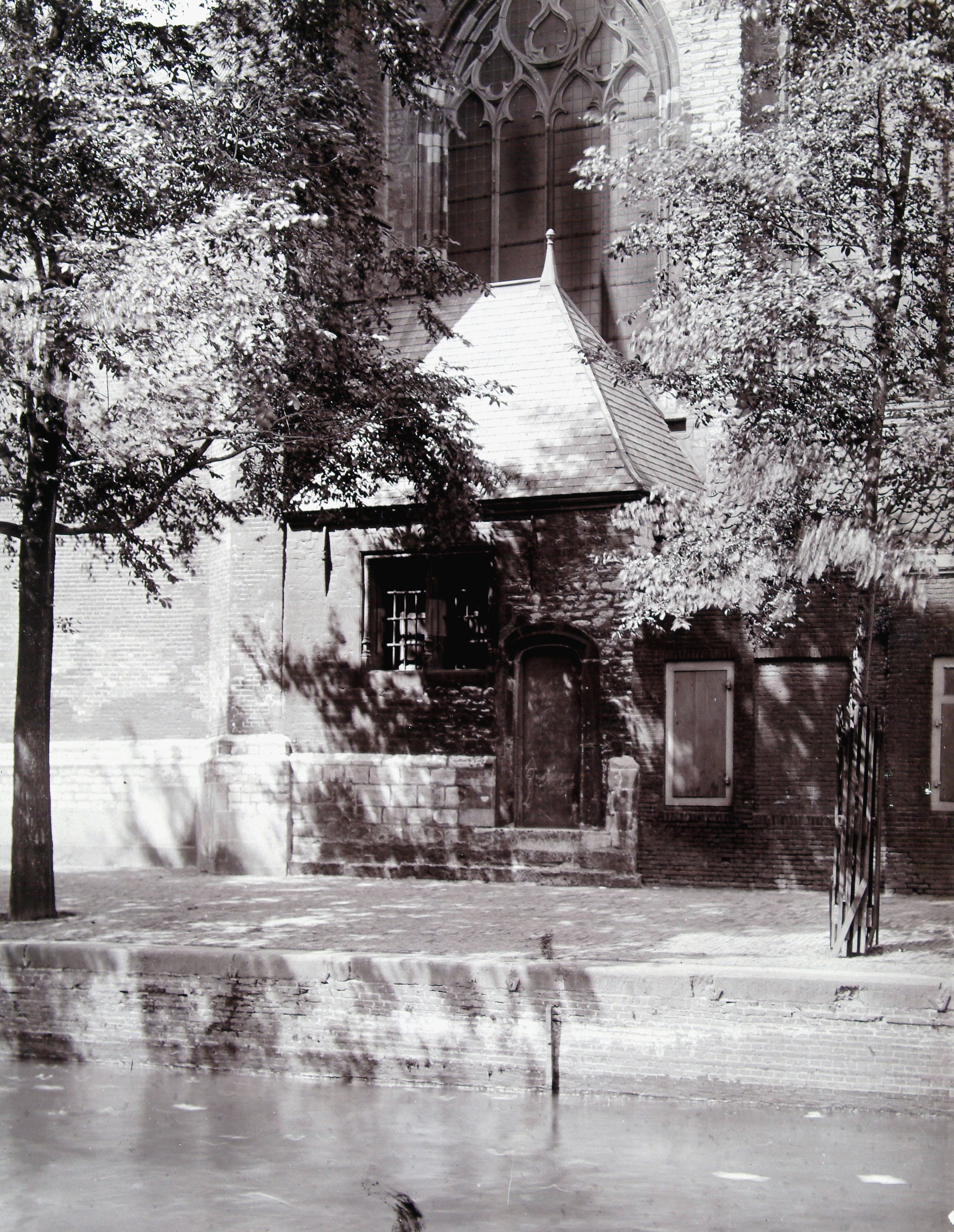 Het Stovenhuis aan de Pottenkade waar de stoven voor de Grote Kerk werden bewaard.