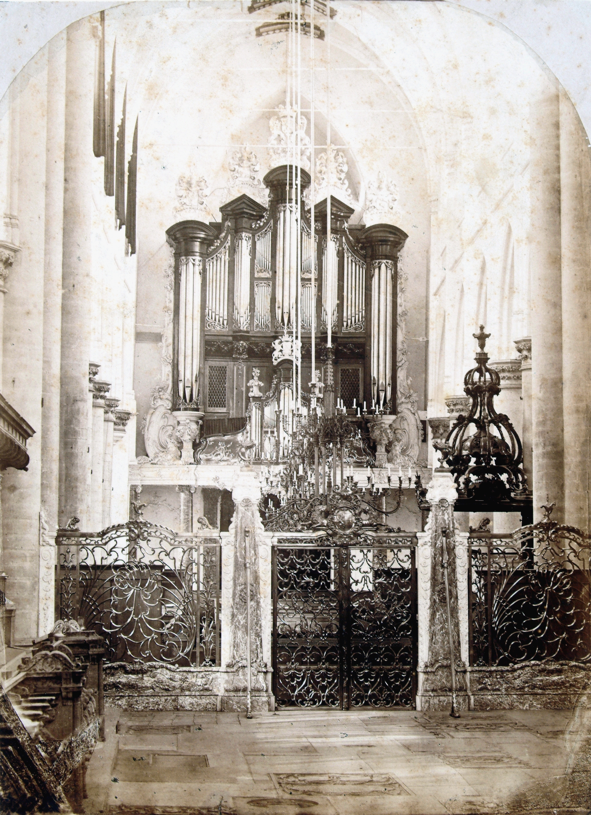 Interieur Grote Kerk met het orgel en de koorhekken.