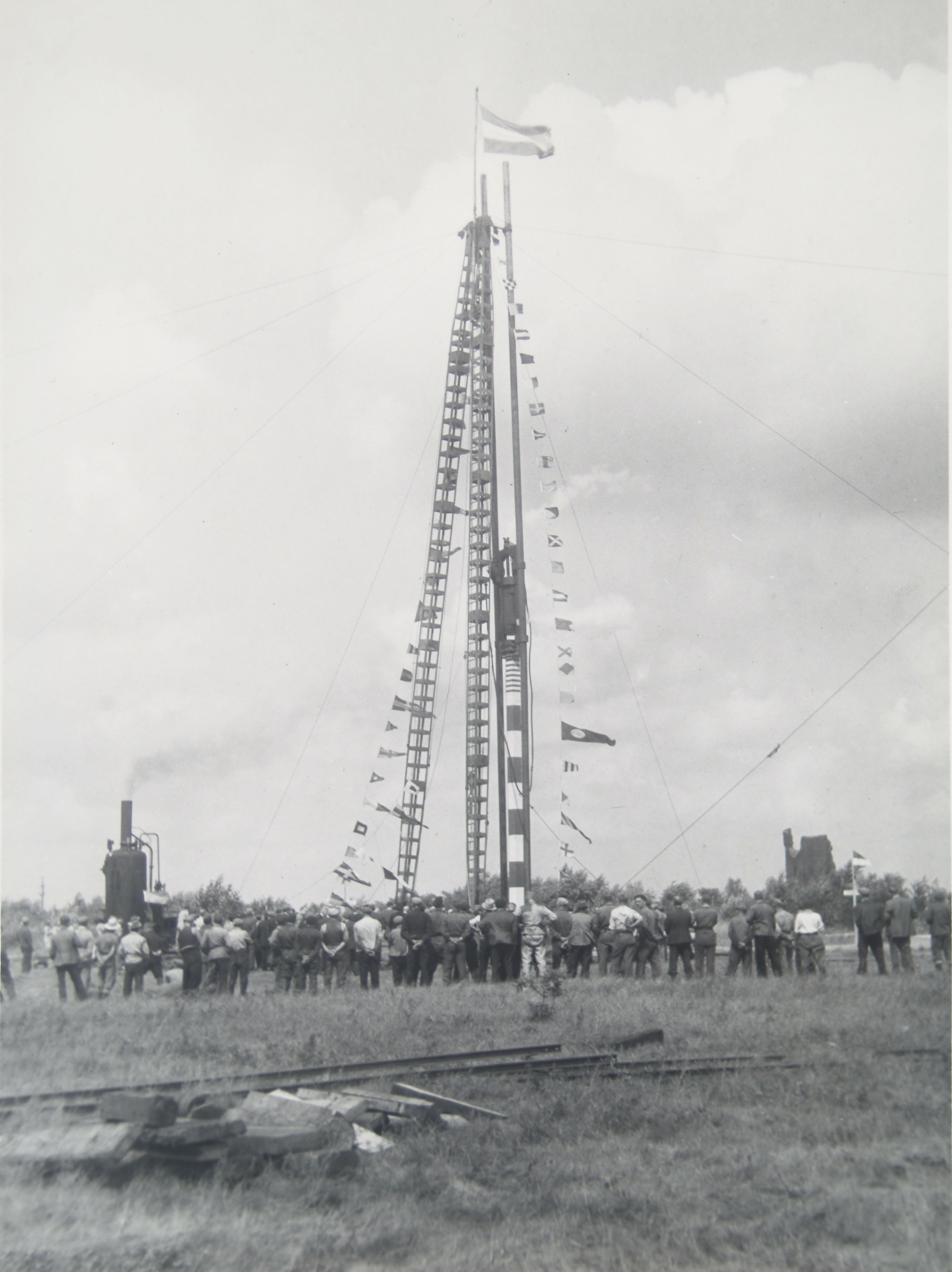 - Het slaan van de eerste paal voor de bouw van de elektriciteitscentrale aan de Baanhoekweg. Met op de achtergrond Huis te Merwede