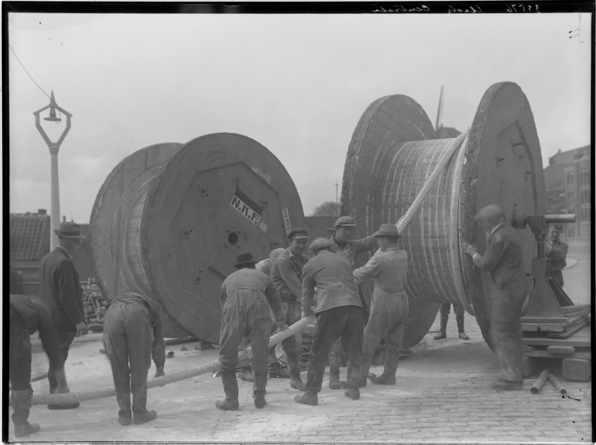 Het leggen van elektriciteitskabel op de Groenedijk bij de Noordendijk