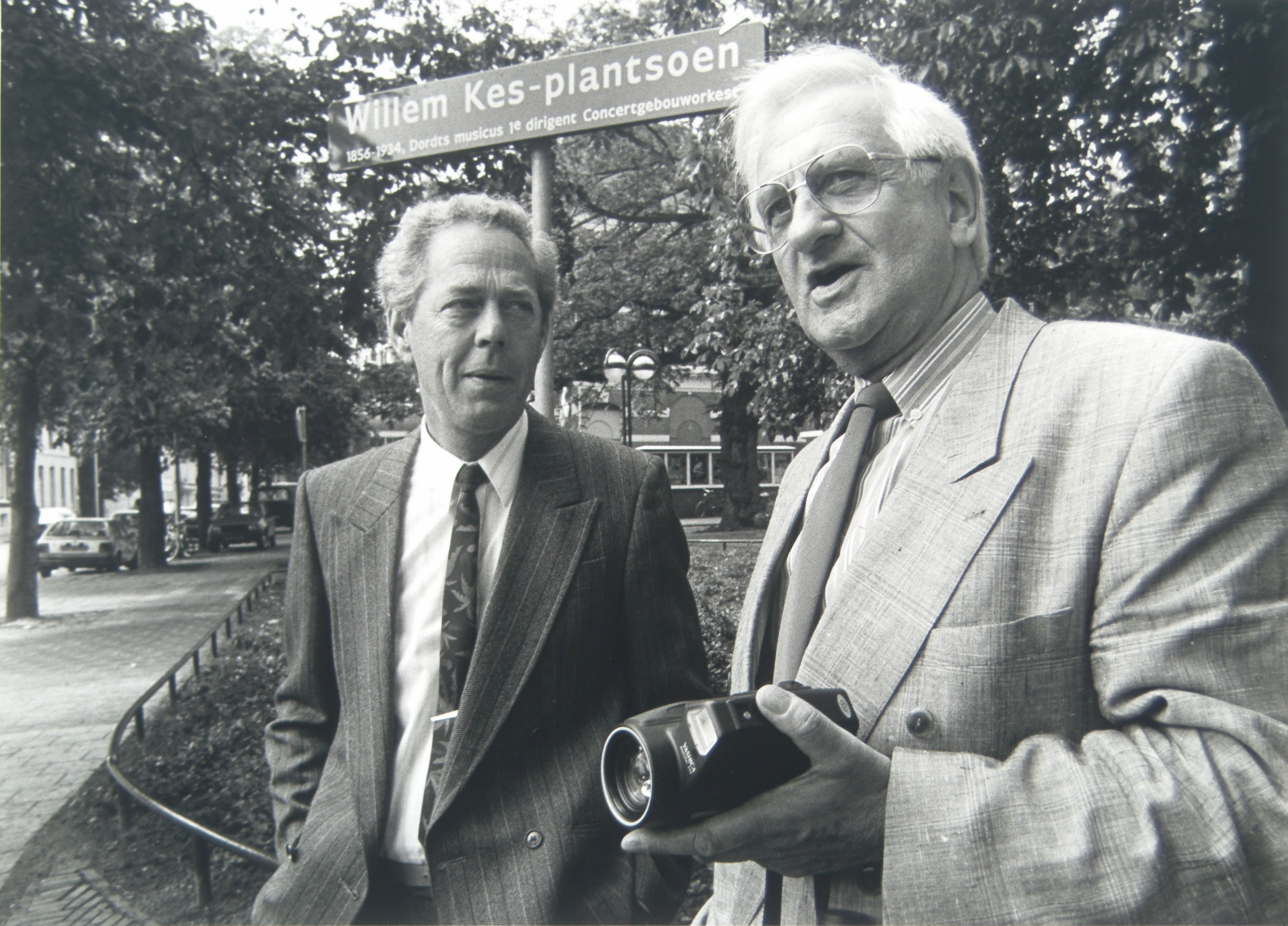 - Twee nazaten van musicus en dirigent Willem Kes bij het Willem Kesplantsoen bij schouwburg Kunstmin