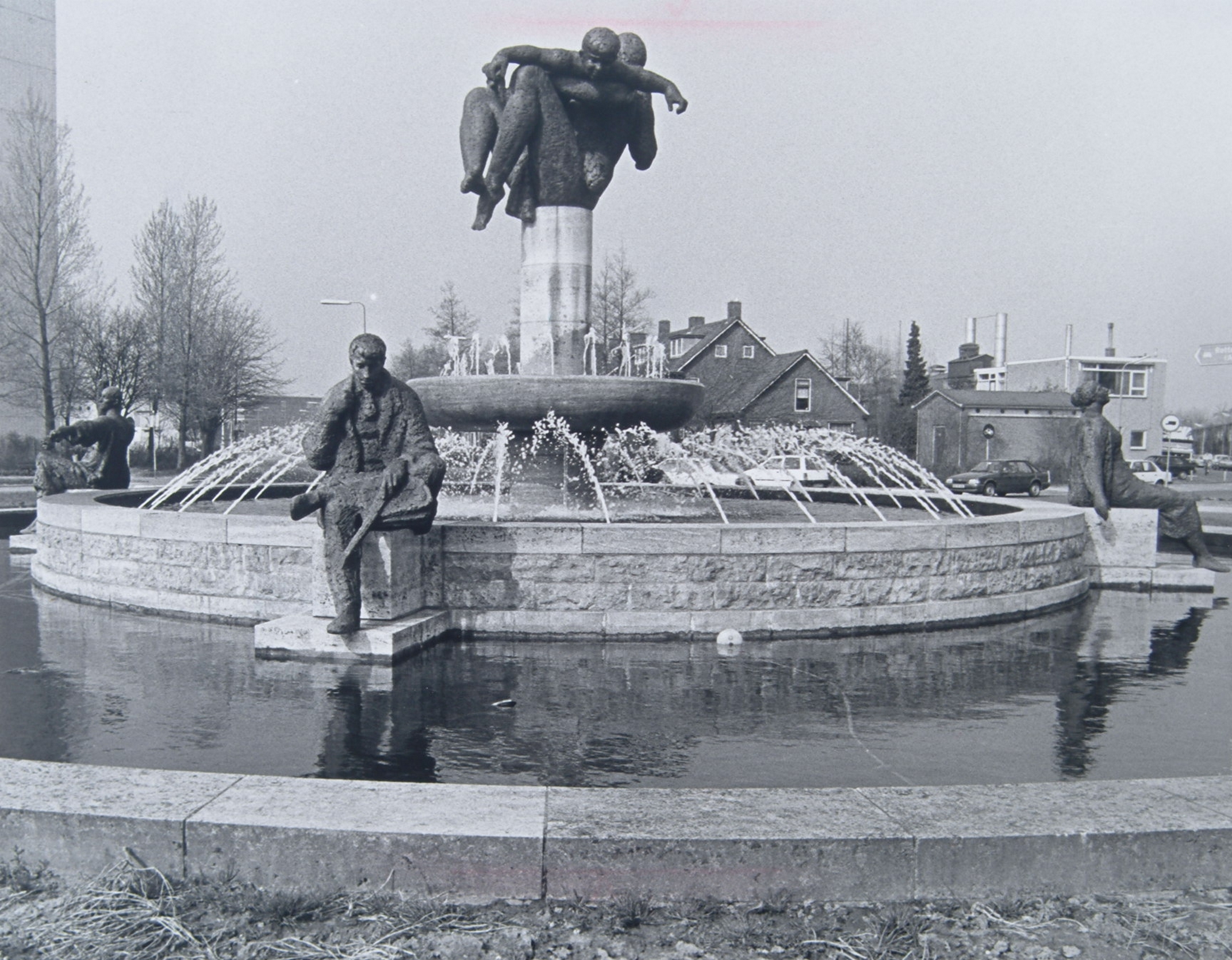 Beeldengroep van Pieter d'Hont uit 1967. Zwijndrecht.net geeft aan: "De fontein uit 1967 verbeeldt de pijlers van onze maatschappij: arbeid (werkman die in de verte tuurt), geloof (oude vrouw met gespreide armen), kunst (clown met luit en bloem) en wetenschap (man met rol papier en meetlat). Bovenin: het leven (vrouw met spelend kind). De fontein was een langgekoesterde wens van Pieter d'Hont en hij heeft er tien jaar aan gewerkt."