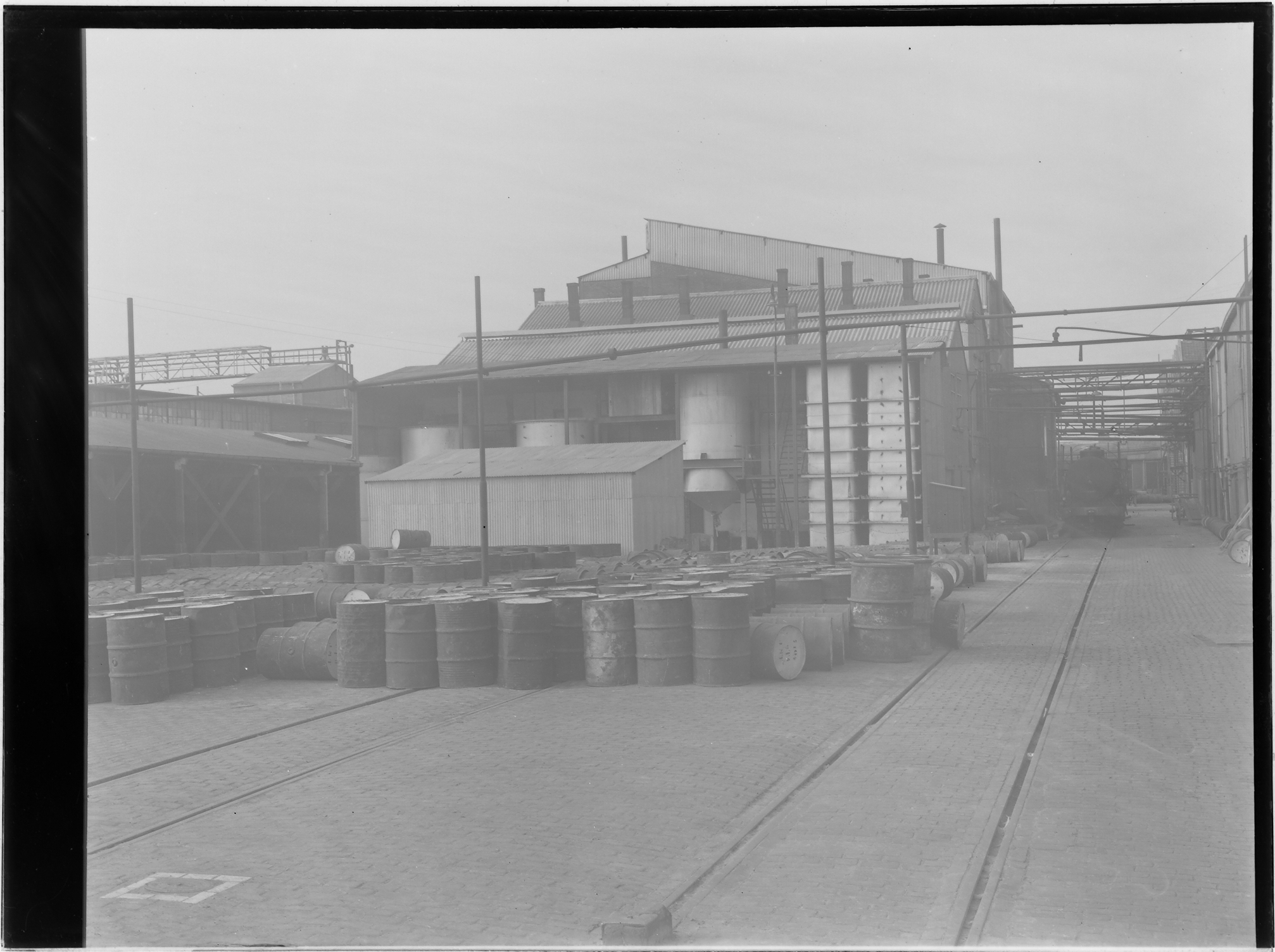 Tonnenopslag op het terrein van de Vereenigde Oliefabrieken te Zwijndrecht