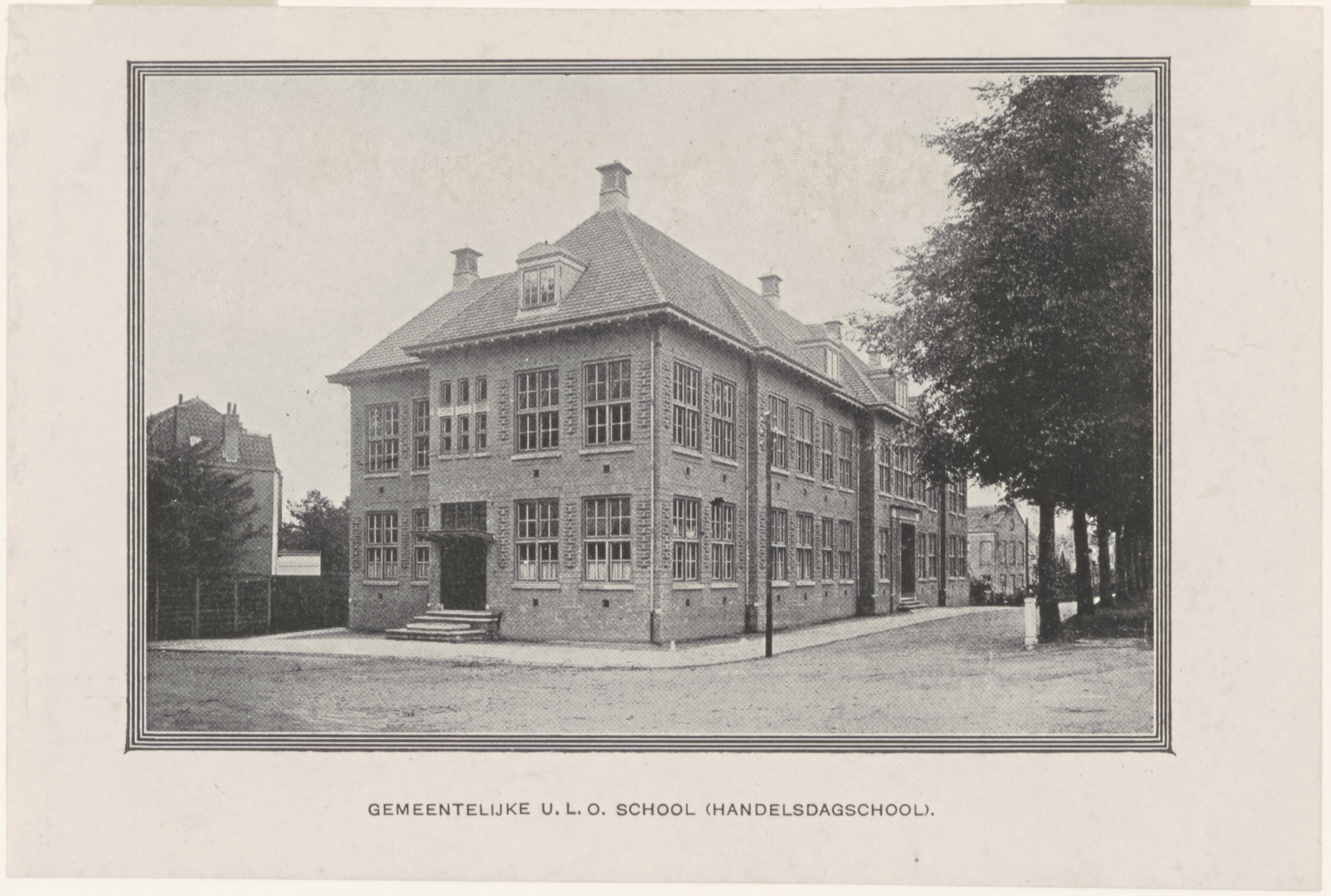 Het gebouw van de gemeentelijke ULO-school (Handelsdagschool) aan de Groenedijk op de …