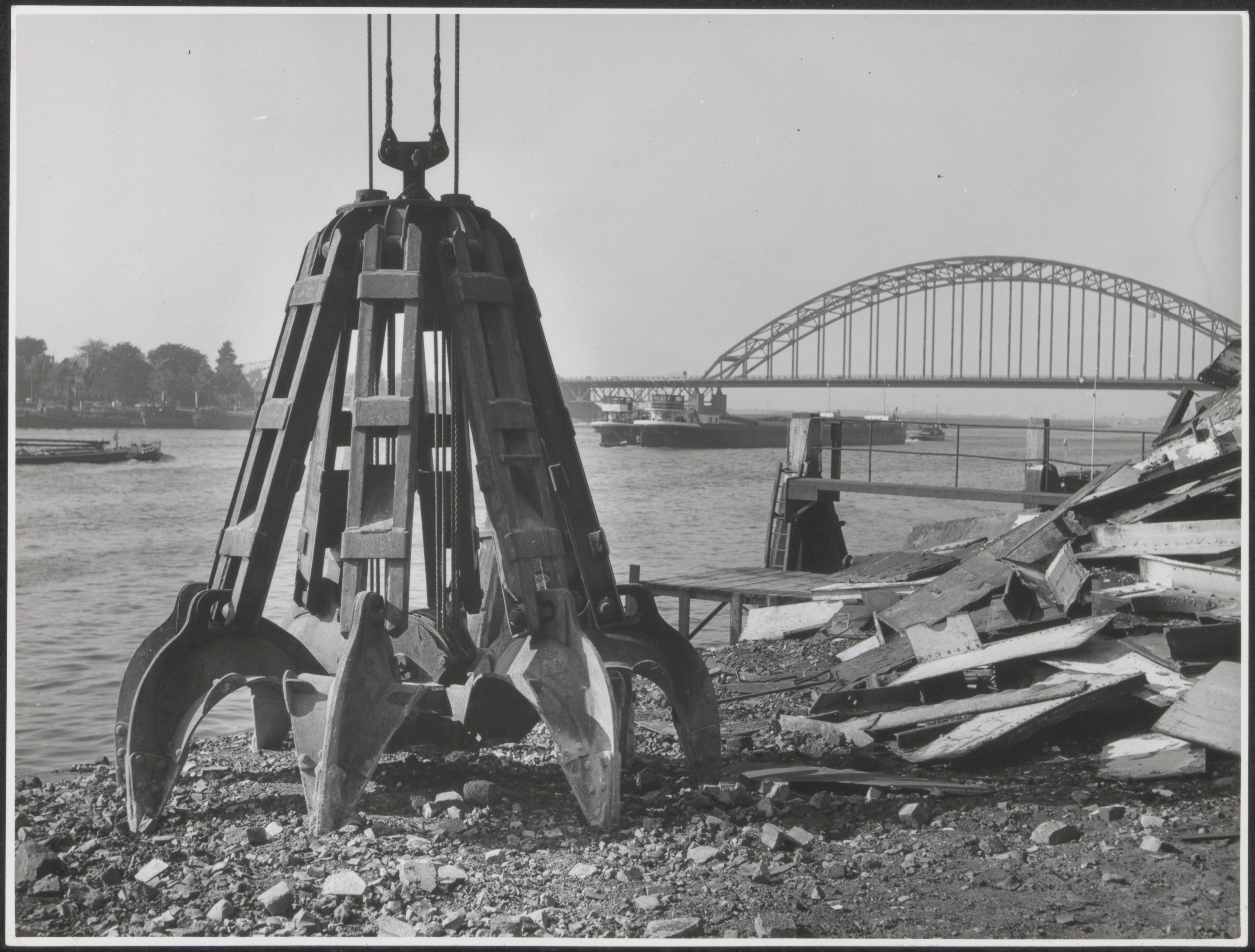 Poliegrijper van een hijskraan voor het lossen van schroot op het terrein van de kabelfabriek in Alblasserdam.