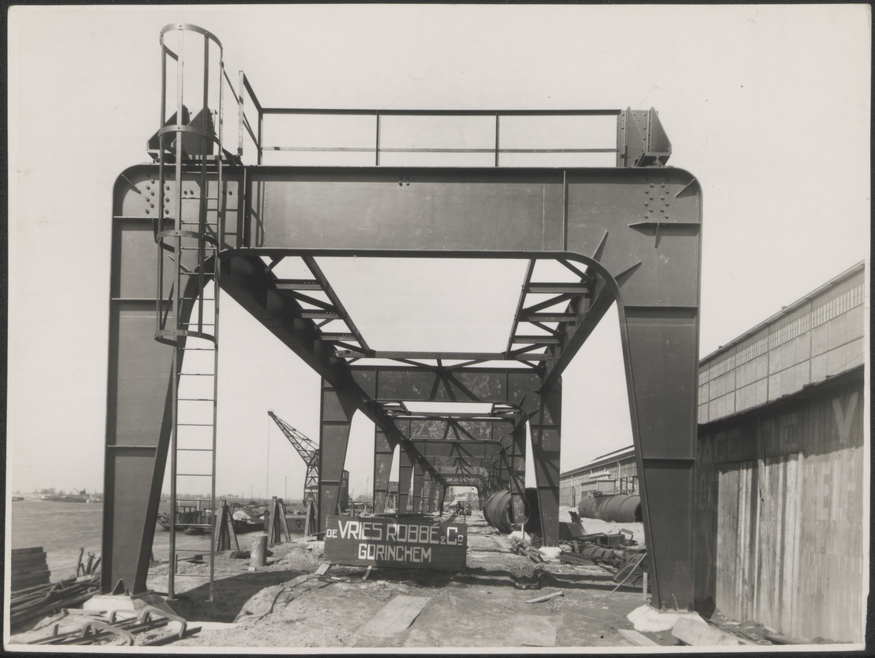 Kraanbaan van de kabelfabriek in Alblasserdam langs de loswal aan de Noord.
