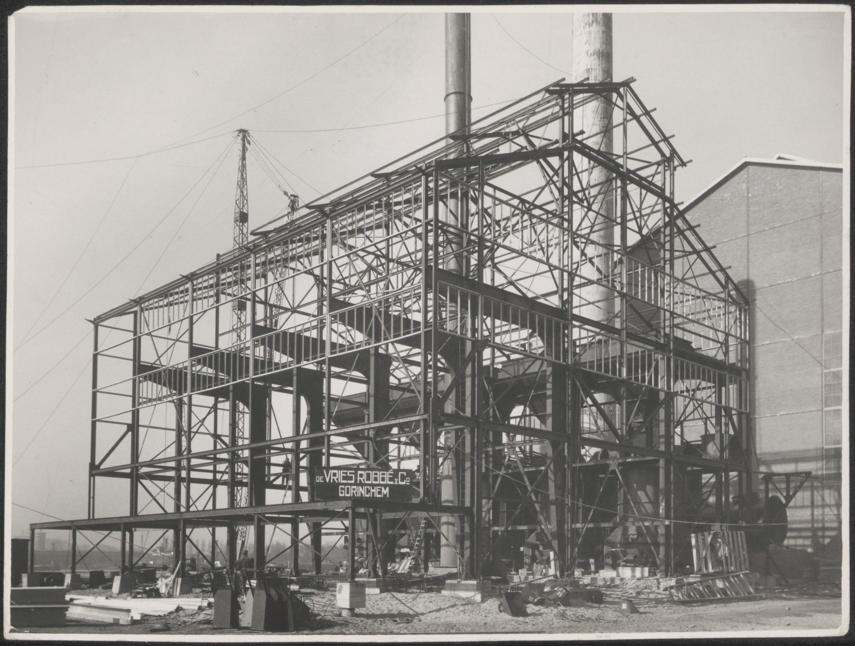 - Bouw van het ketelhuis naast de smelterij van de kabelfabriek in Alblasserdam door De Vries & Robbé.