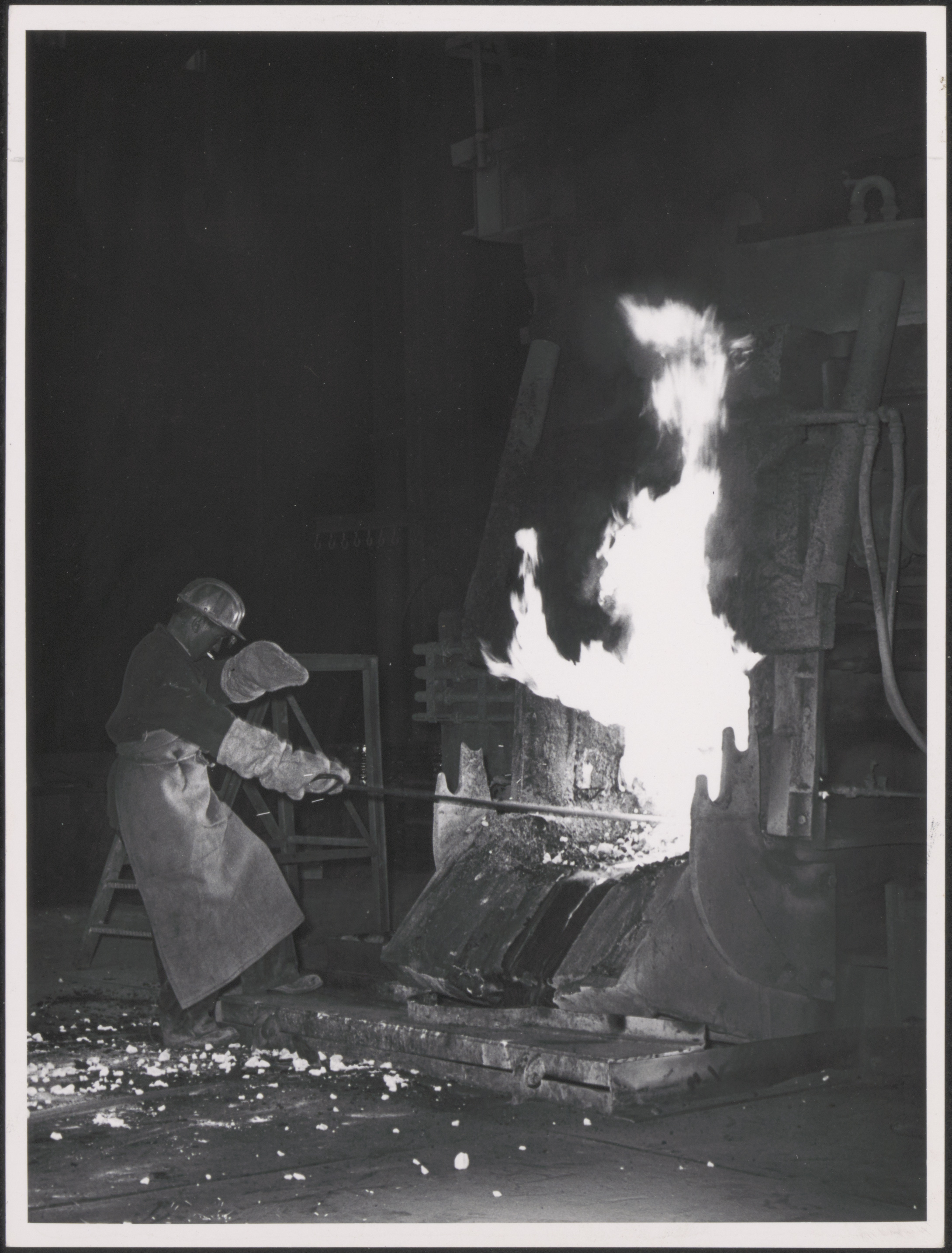 - Scheppen van grondstoffen in de elektro-oven bij de kabelfabriek in Alblasserdam.