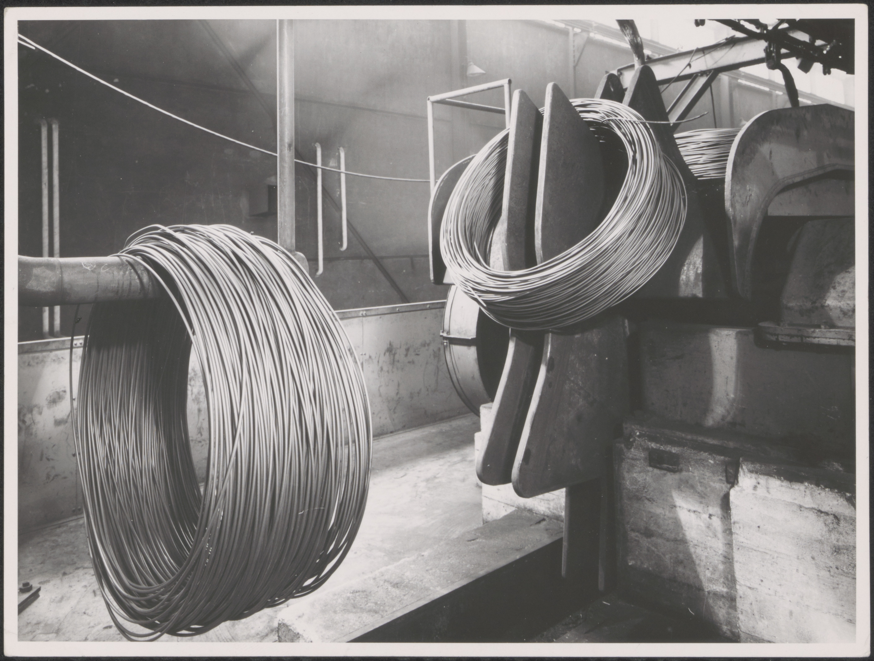 - De hakenbaan rollen staaldraad in de kabelfabriek in Alblasserdam.