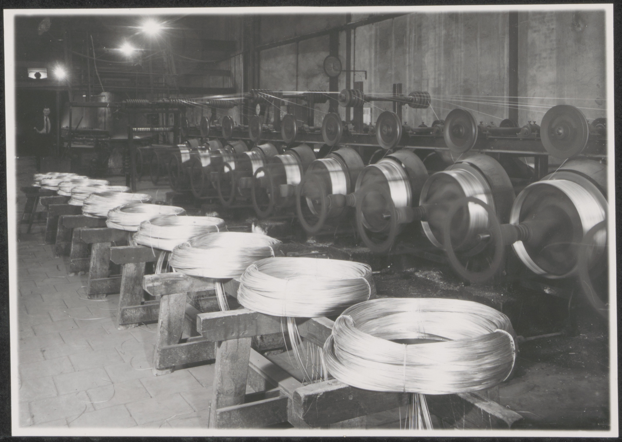- Haspels met staaldraad in de kabelfabriek in Alblasserdam.