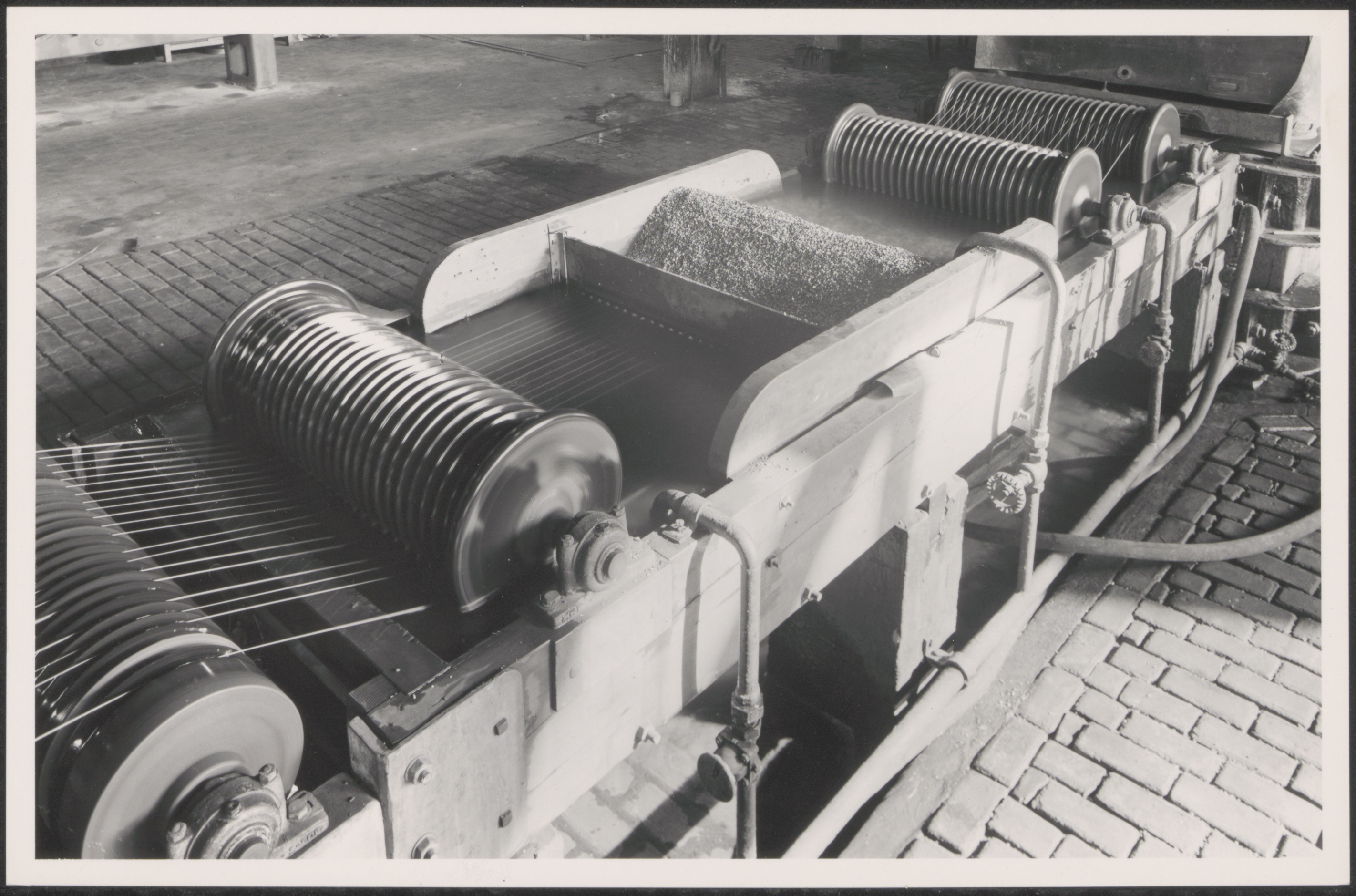 - Reinigen van gewalst staaldraad door onderdompeling in een zuurbad (beitsen) in de kabelfabriek in Alblasserdam.