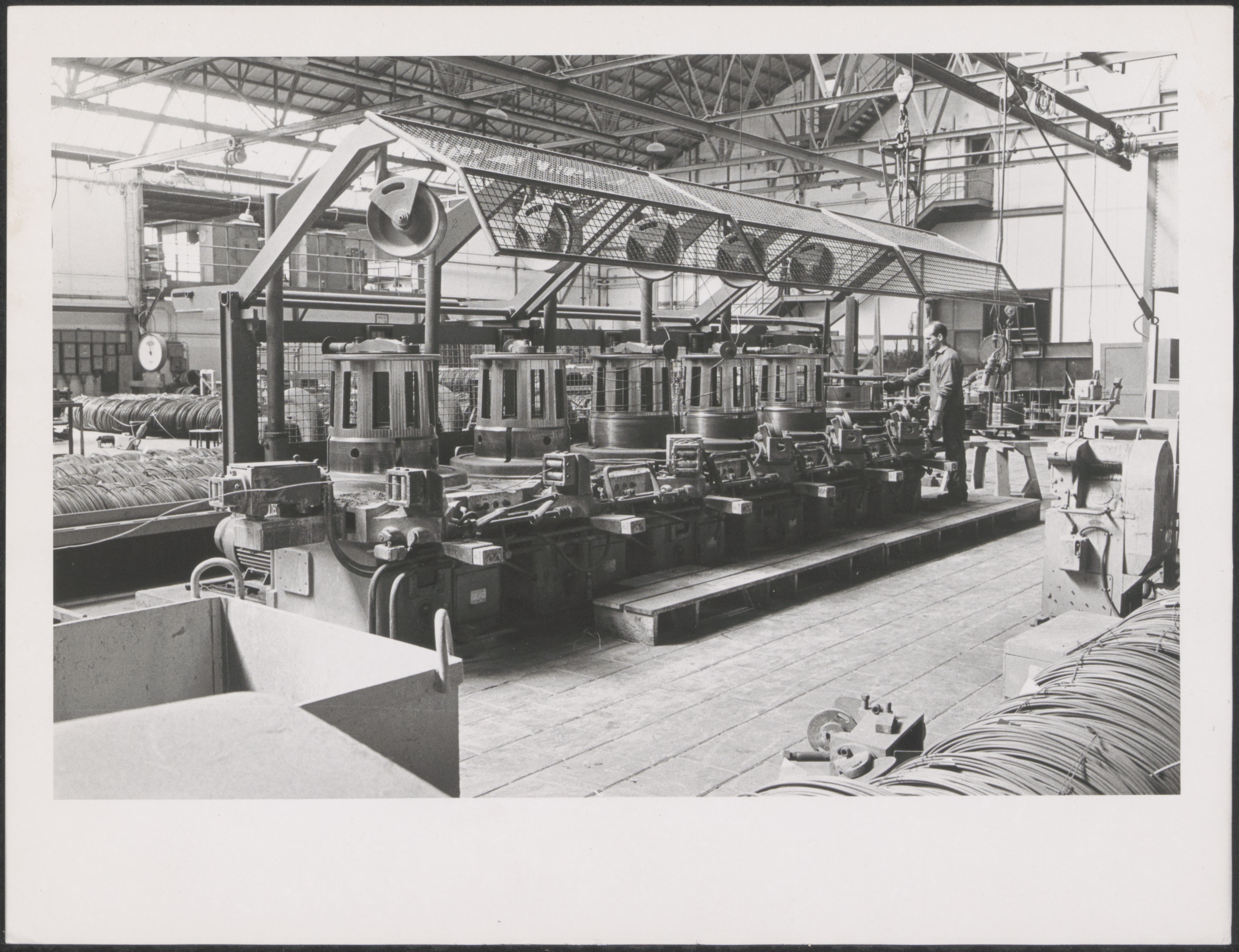 - Afdeling waar staaldraad wordt getrokken in de kabelfabriek in Alblasserdam.