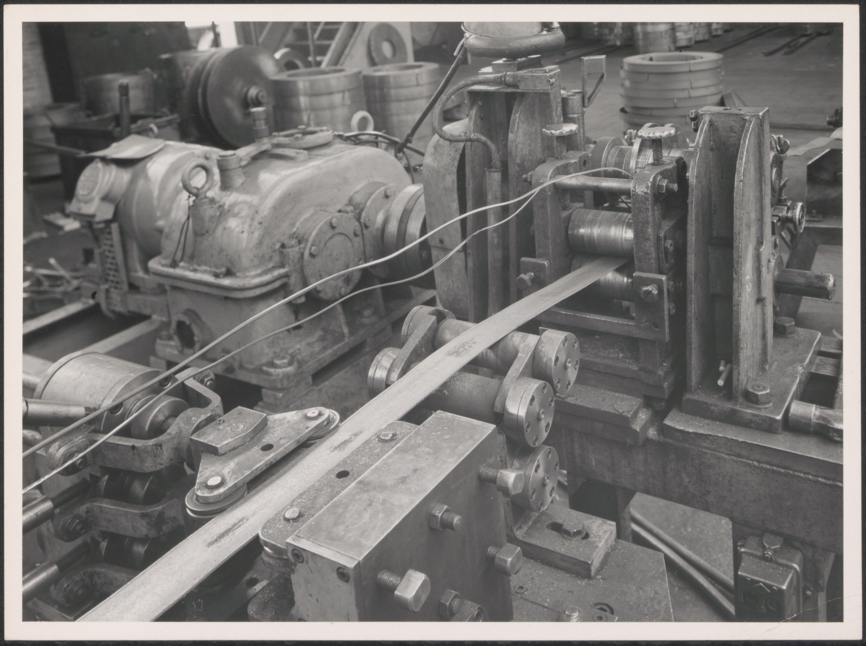 Walsen van stalen banden bij de kabelfabriek in Alblasserdam.
