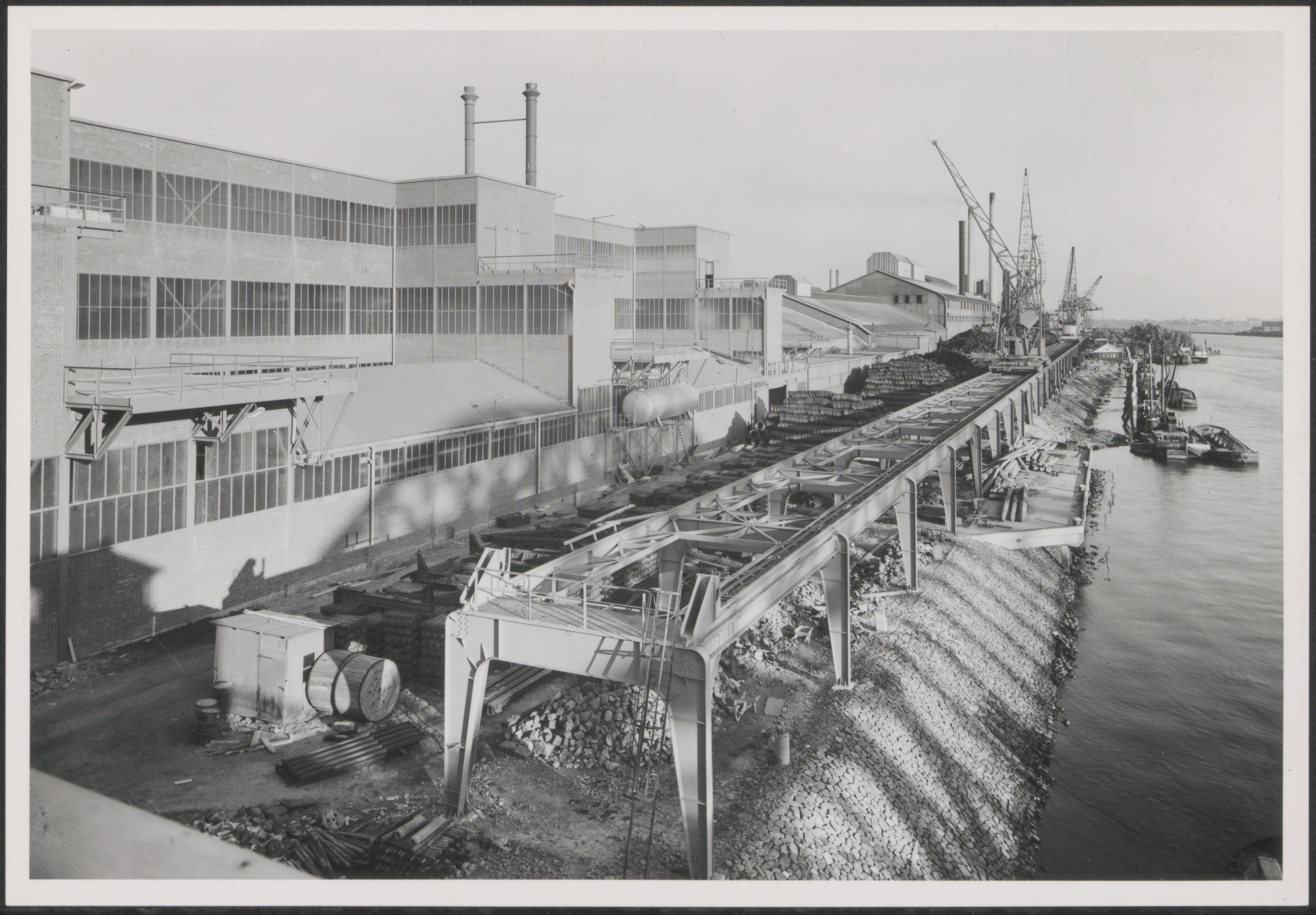 Uitbreiding van de loswal langs de Noord bij de kabelfabriek in Alblasserdam.
