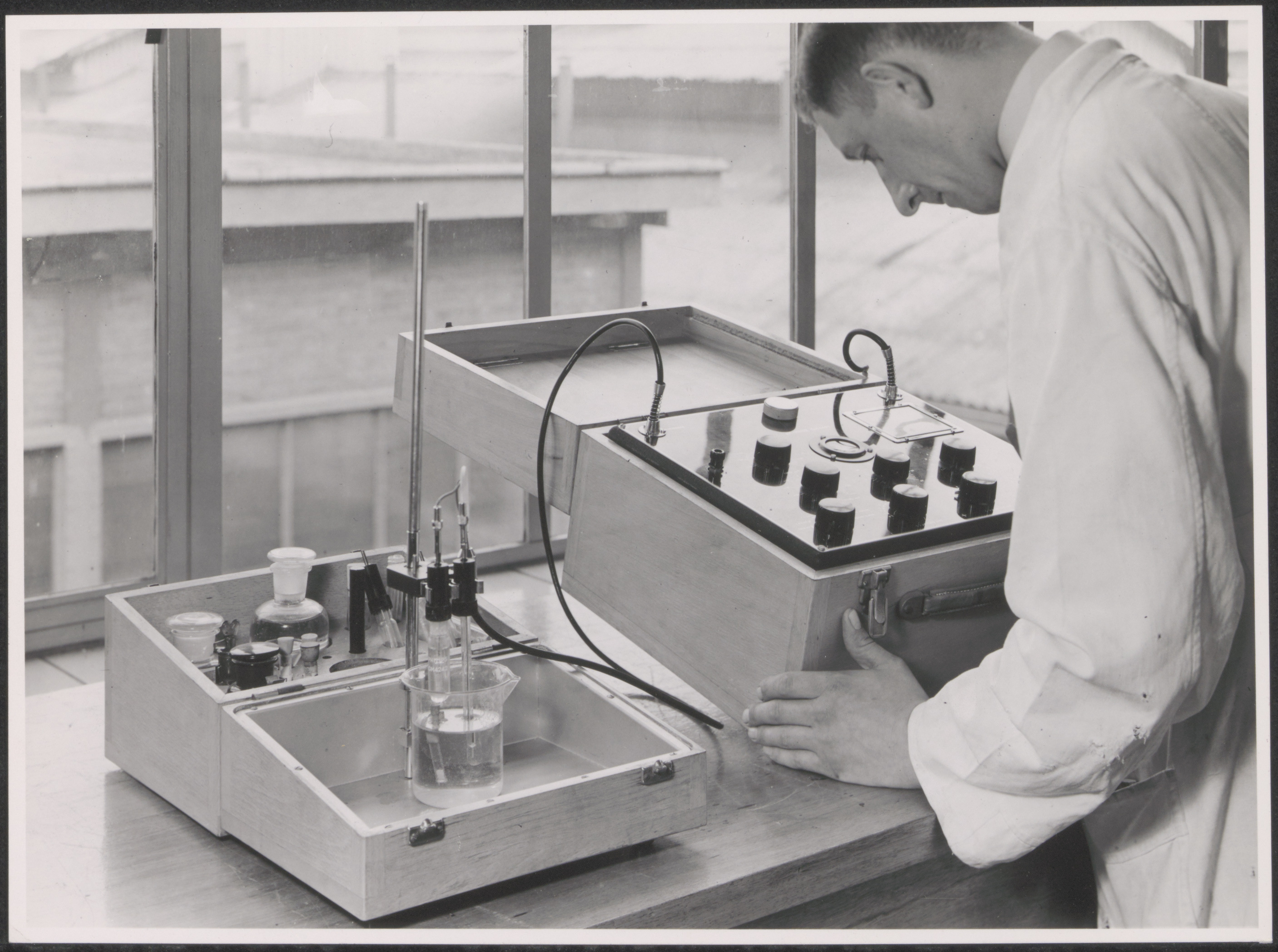 Het laboratorium bij de kabelfabriek in Alblasserdam.