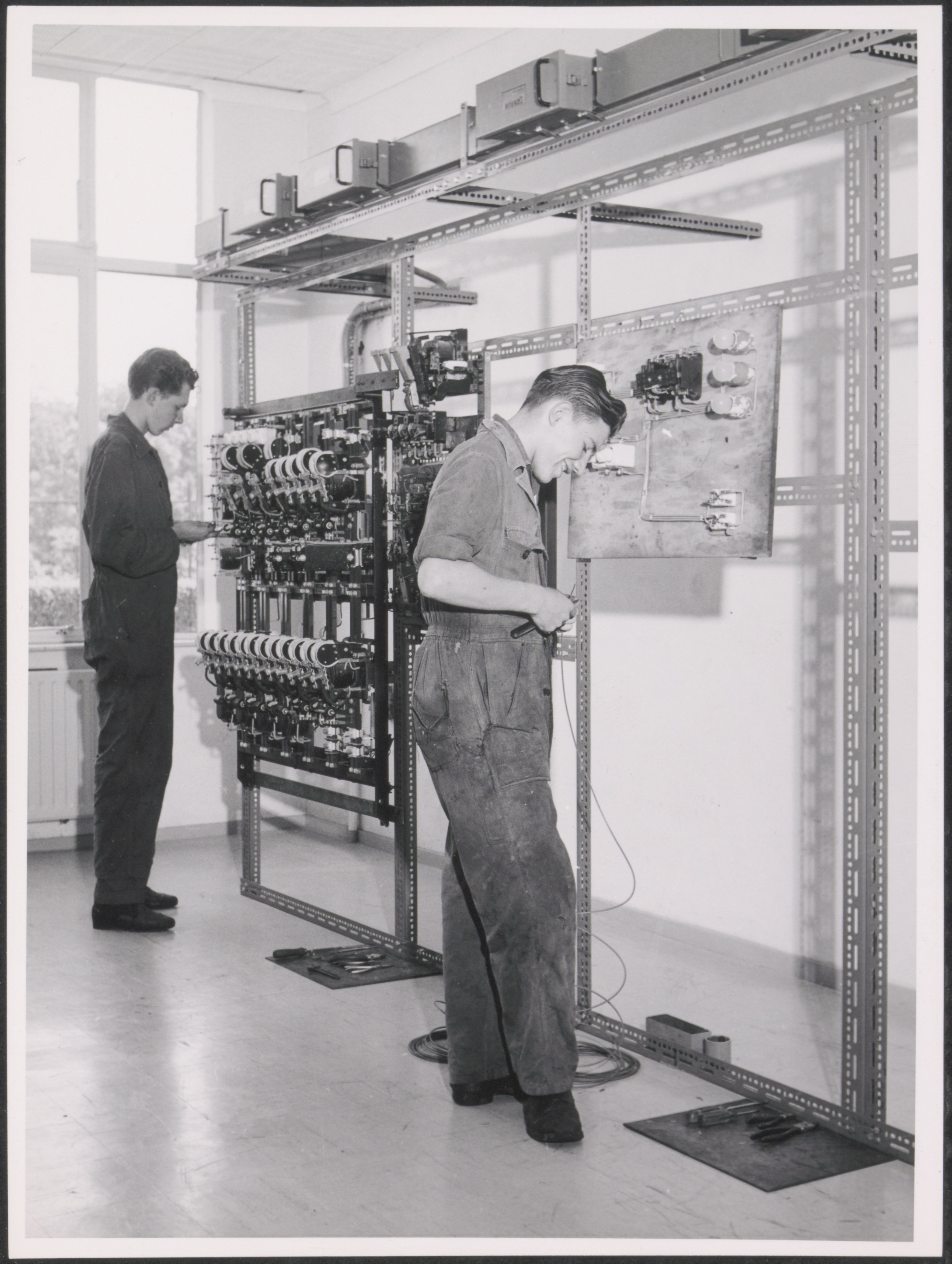 - Opleidingsruimte voor elektrotechnici in de bedrijfsschool van de kabelfabriek in Alblasserdam.