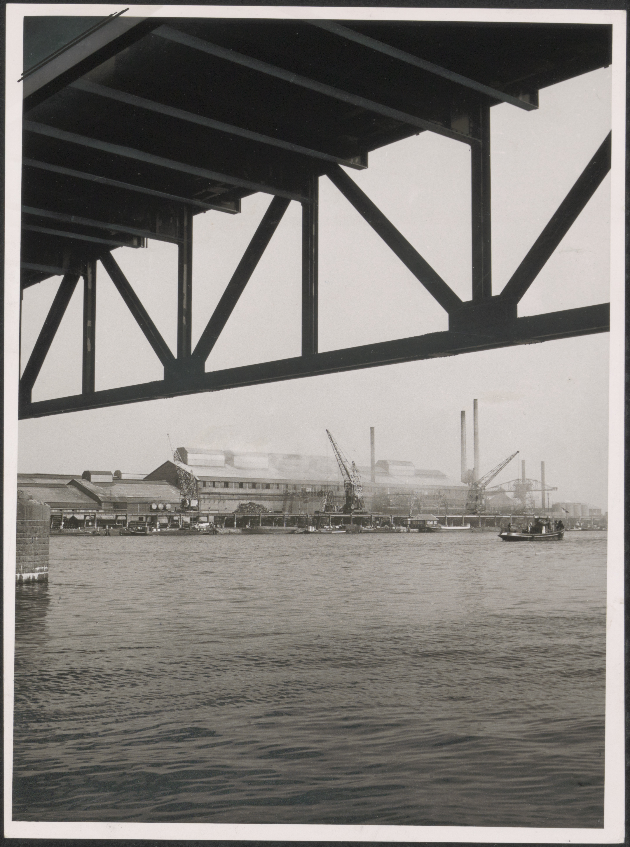 De kabelfabriek in Alblasserdam, gezien van onder de Brug over de Noord.