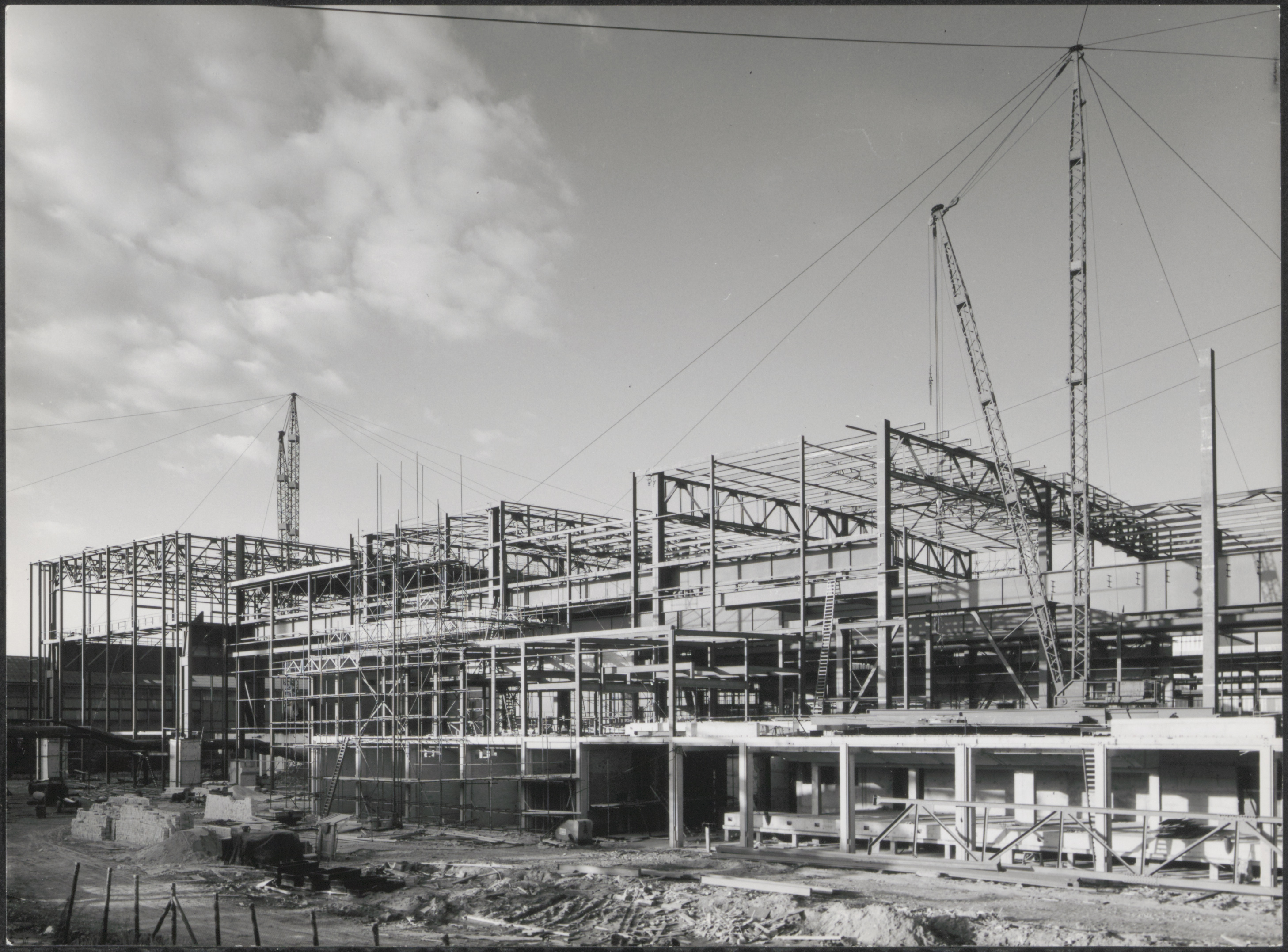 - Bouw van de zgn. blokstraat van de kabelfabriek in Alblasserdam, gezien aan de zijde van de Staalindustrieweg.