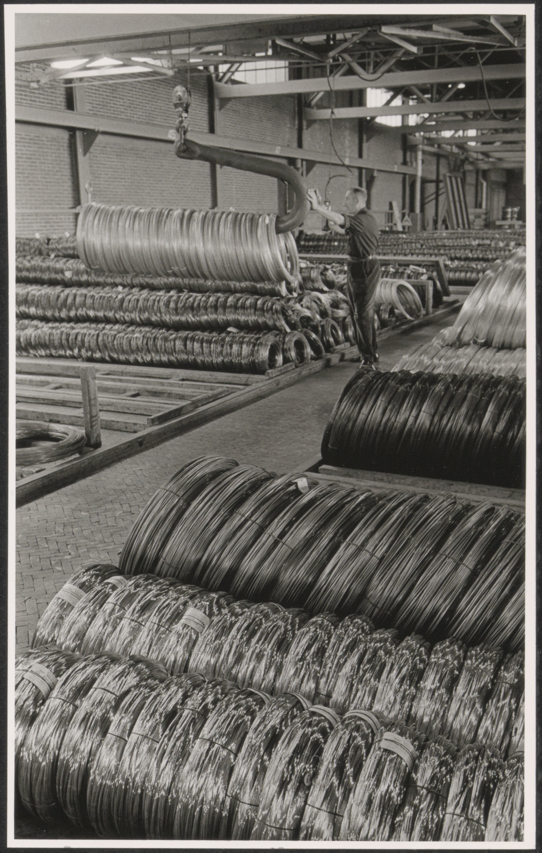 - Opslag van staaldraad in de kabelfabriek in Alblasserdam.