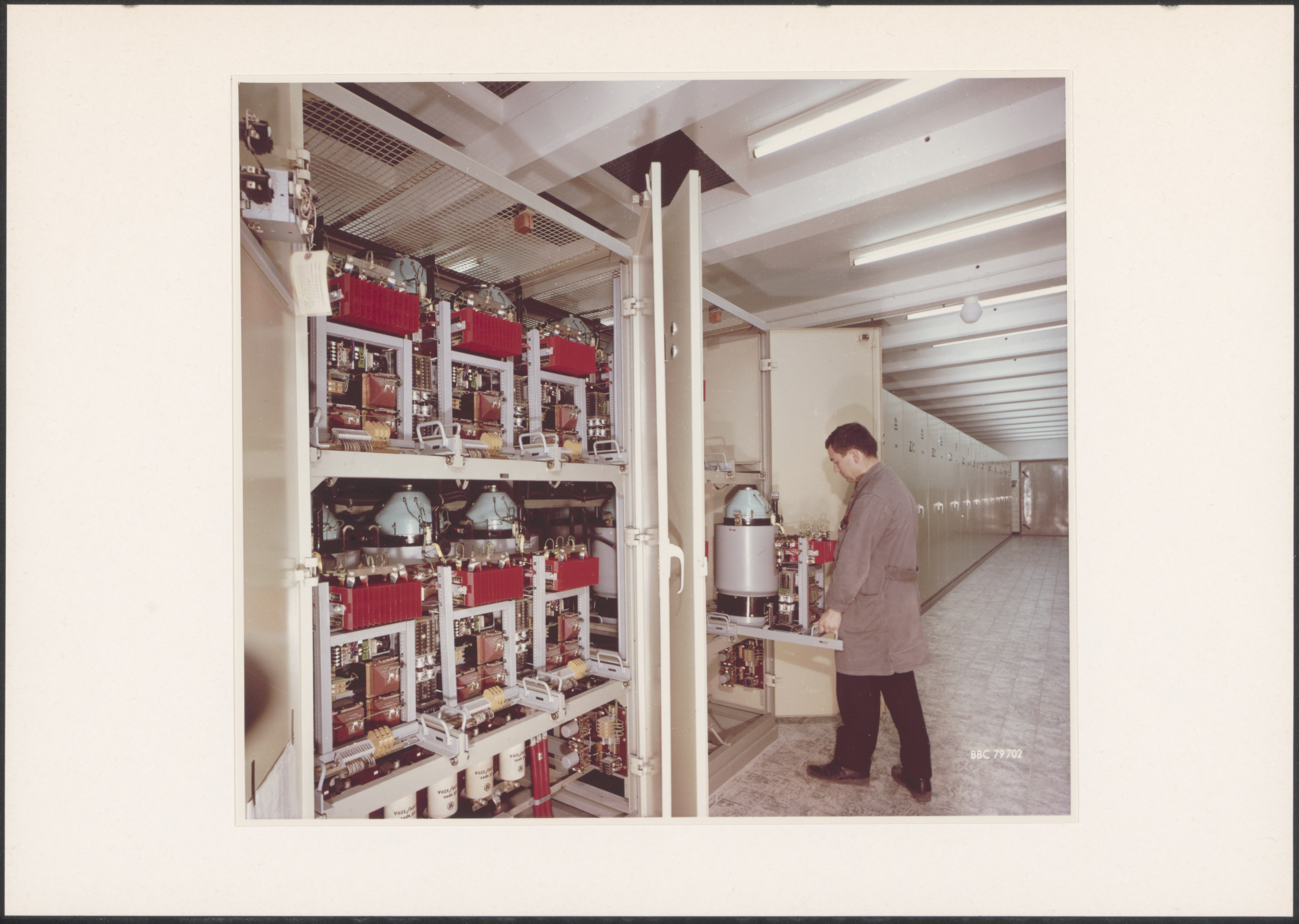 BBC type LG41 kwikdampgelijkrichters in de gelijkrichterruimte van de blokstraat. Deze installatie voorzag de dubbele aandrijfmotor van de blokwals van zijn gelijkspanning.