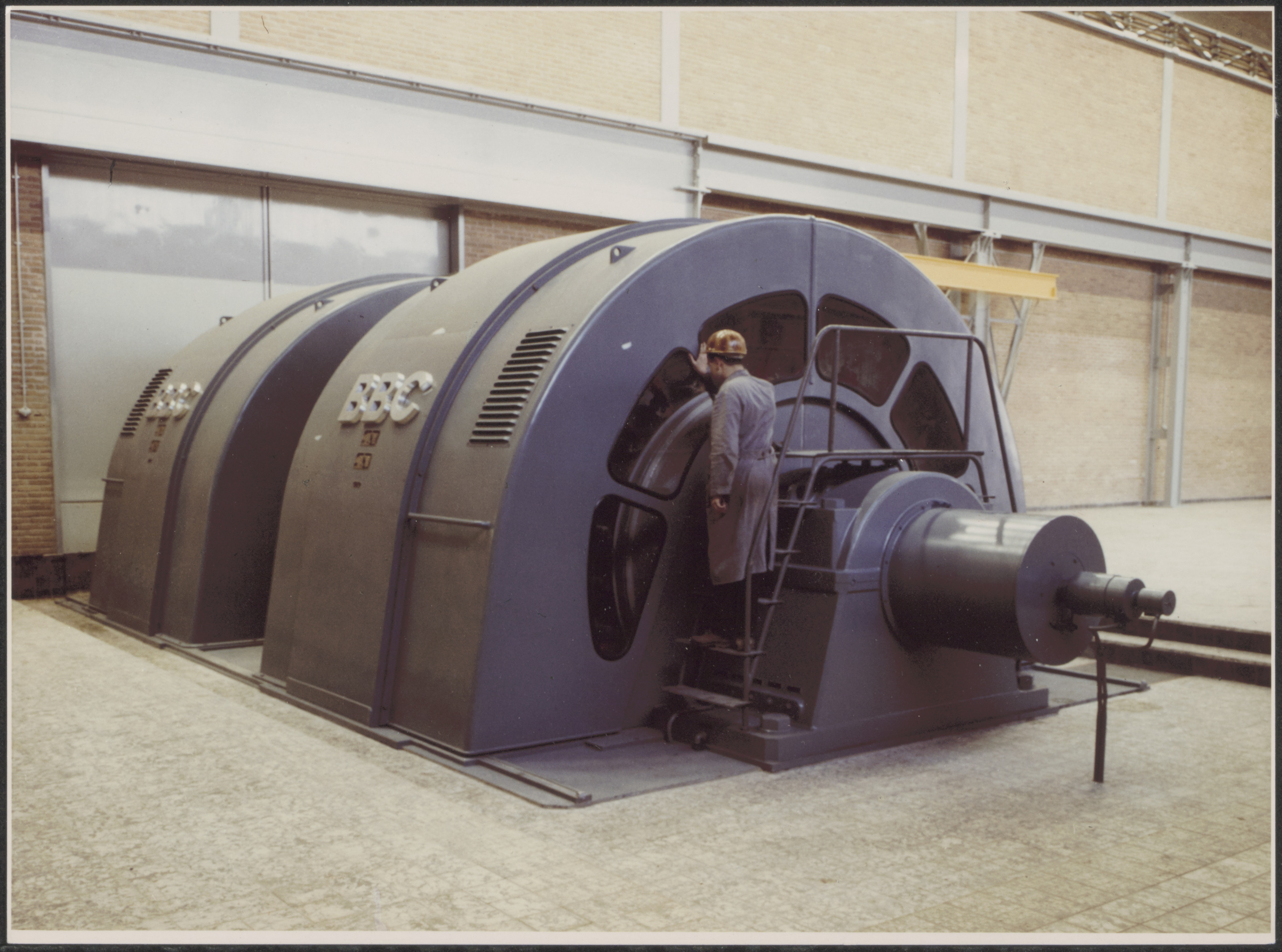 - Hoofdmotor voor de aandrijving walsen in de kabelfabriek in Alblasserdam.