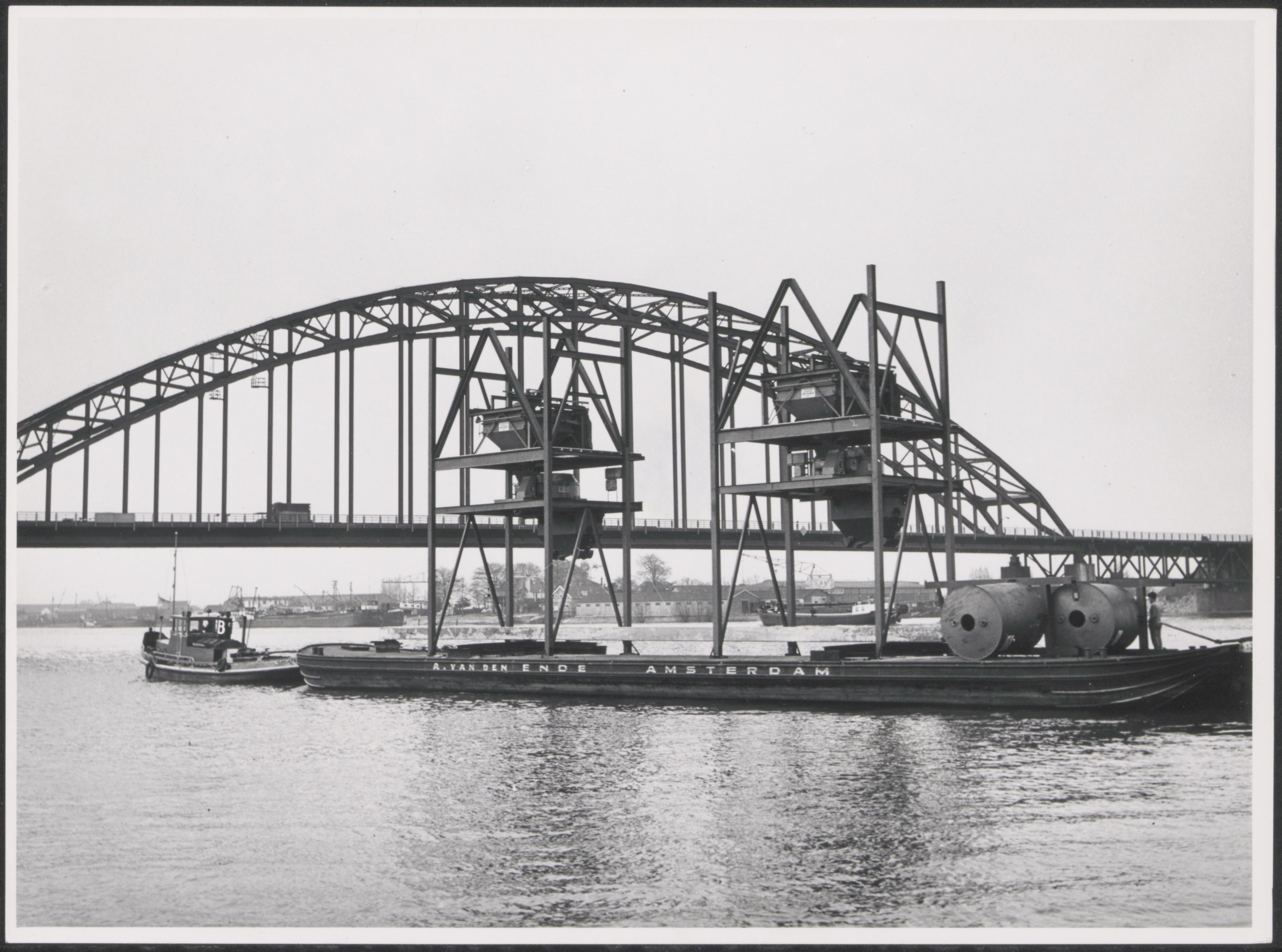 - Aanleveren van onderdelen van een betonfabriek die werd opgesteld bij de kabelfabriek in Alblasserdam om de bouw van de nieuwe fabriek dag en nacht van beton te kunnen voorzien. Het transport bevindt zich bij de Brug over de Noord.