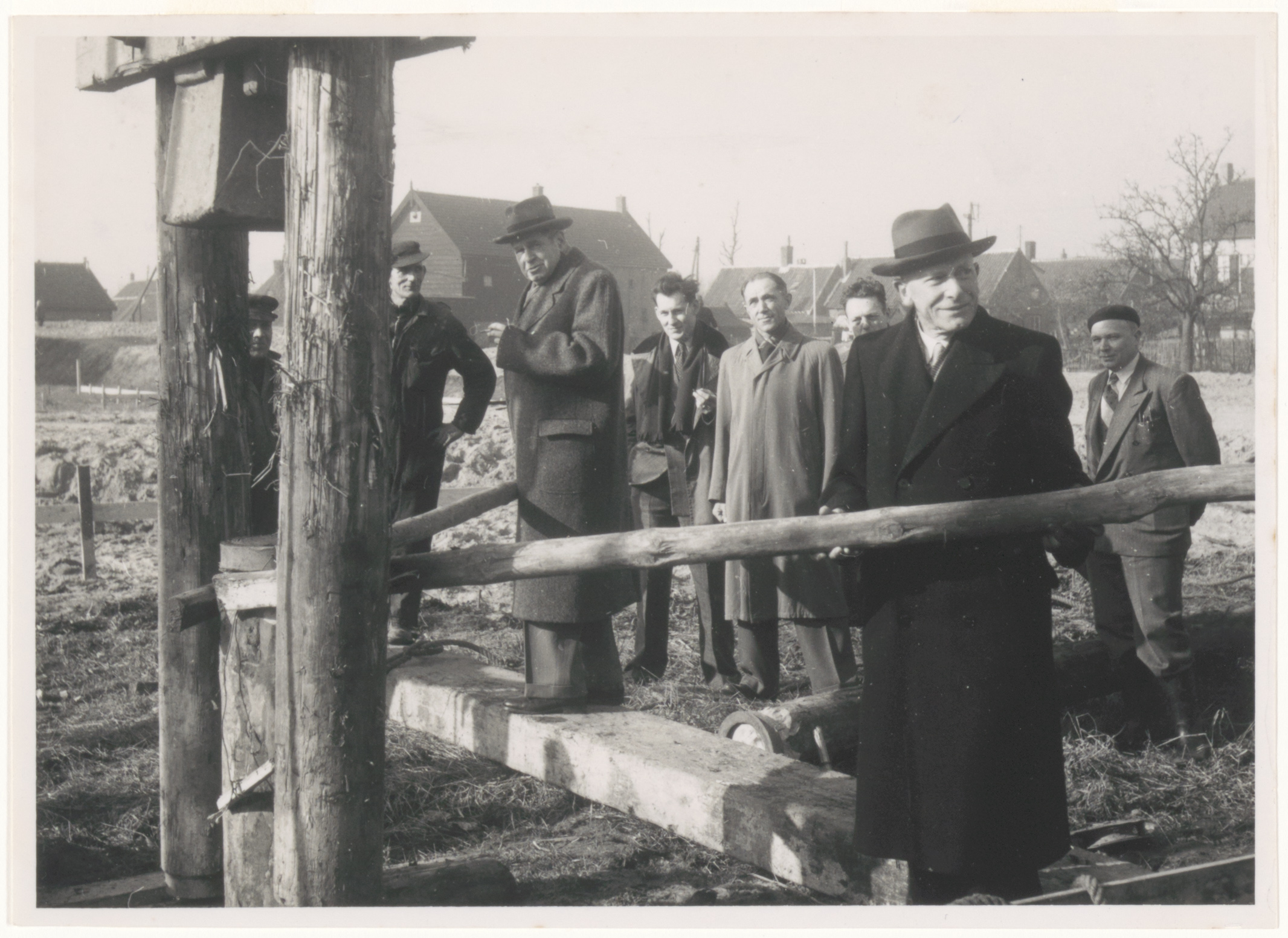 Slaan van de eerste paal voor nieuwbouwwoningen.