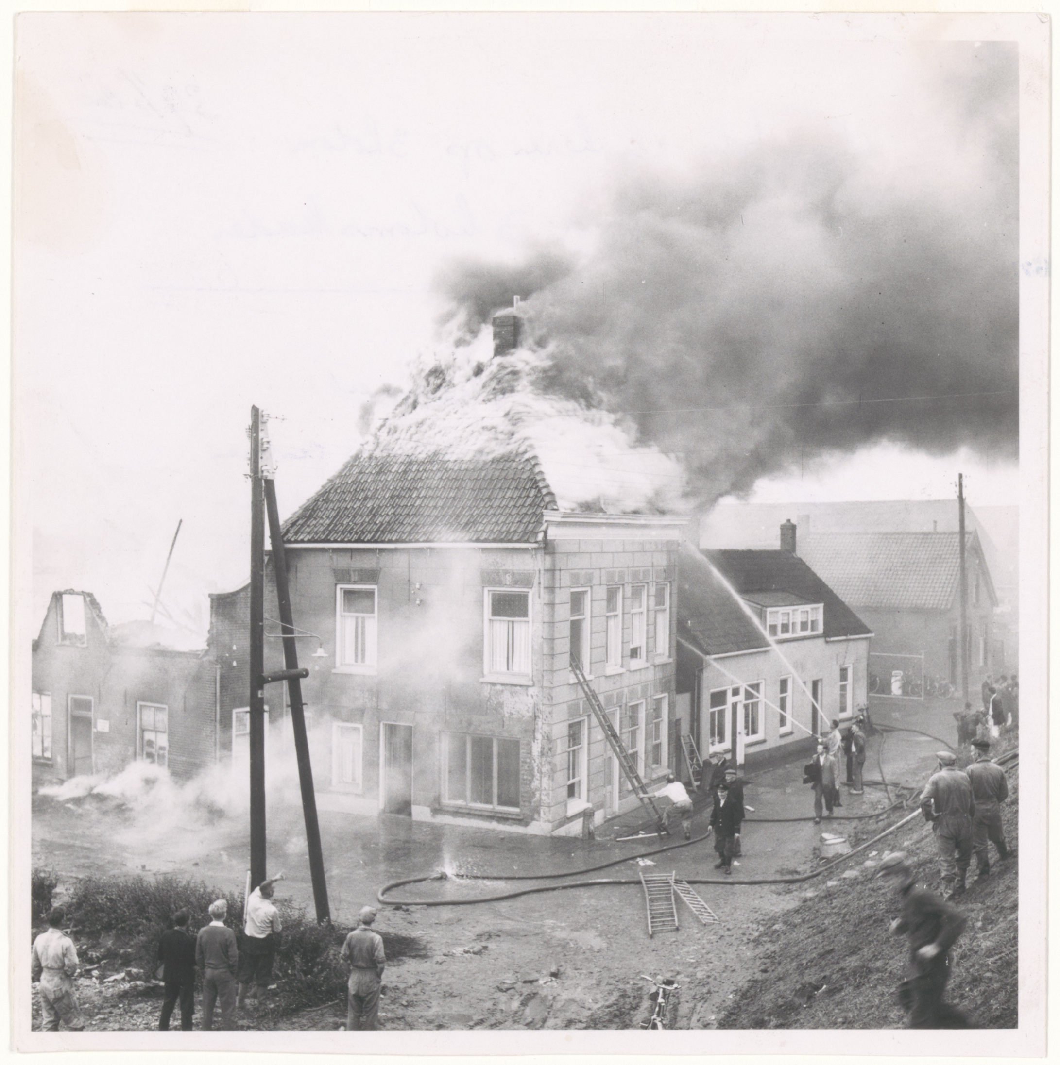 Uitslaande brand van woning en vlaspakhuis van de familie Visser aan de Beneden …
