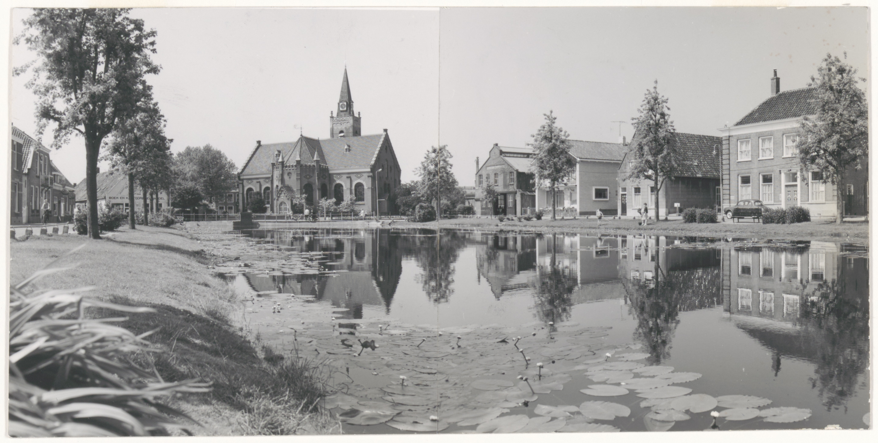 - De Kreek te midden van Zuid Voorstraat en Noord Voorstraat (rechts), gezien richting Smidsweg en de Hervormde Kerk. Links het gemeentehuis (ter hoogte van fietser). Het huis met witte gevel is boekhandel Het Centrum (De Vries), dat op punt van verdwijnen staat. Rechts de werkplaats en het woonhuis van fa.H.Barth en kantoor van Gemeentewerken.